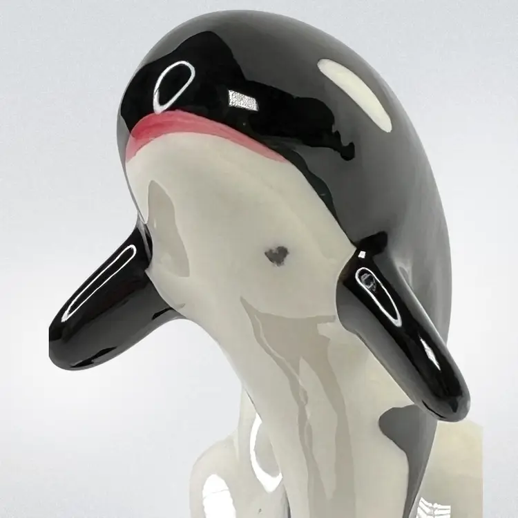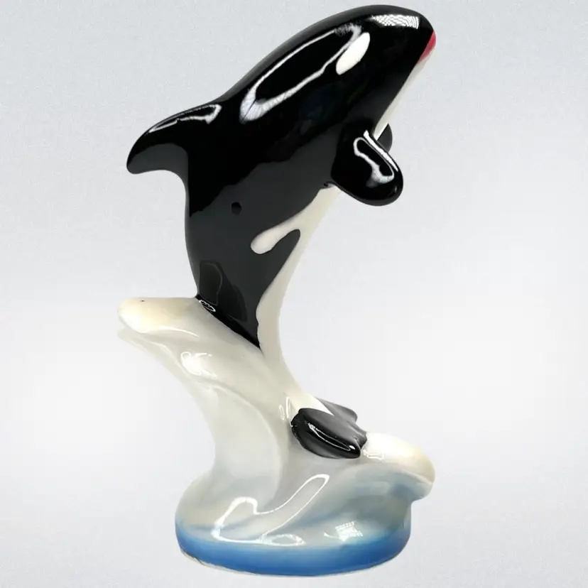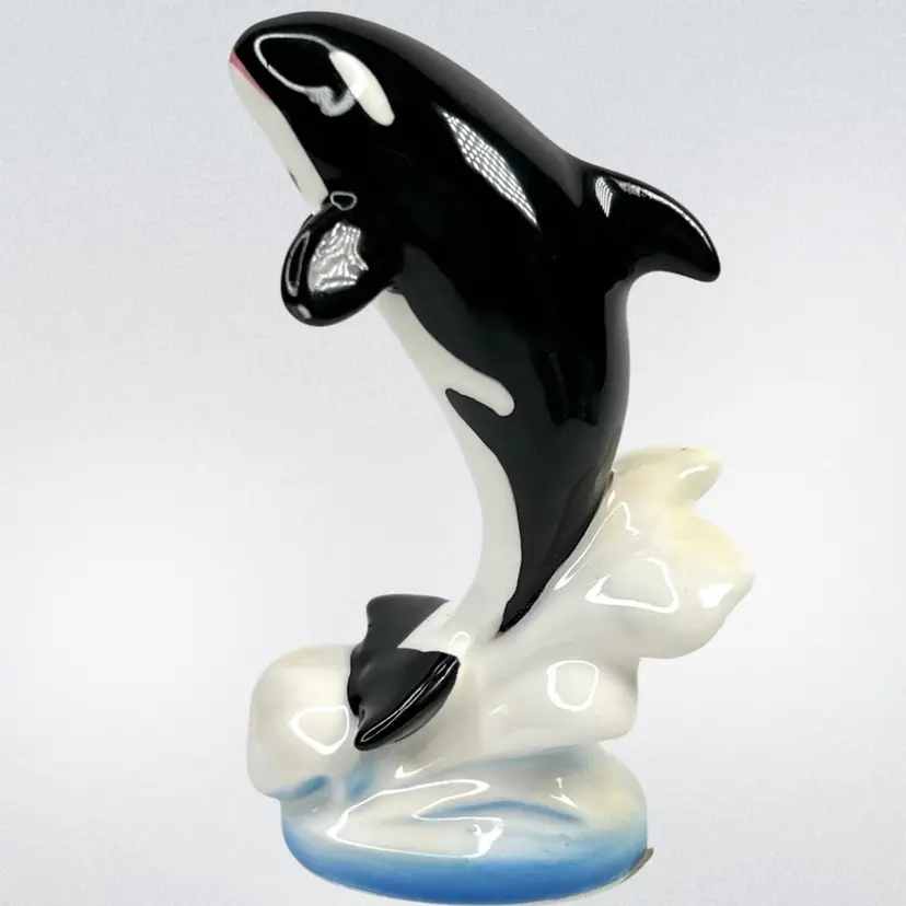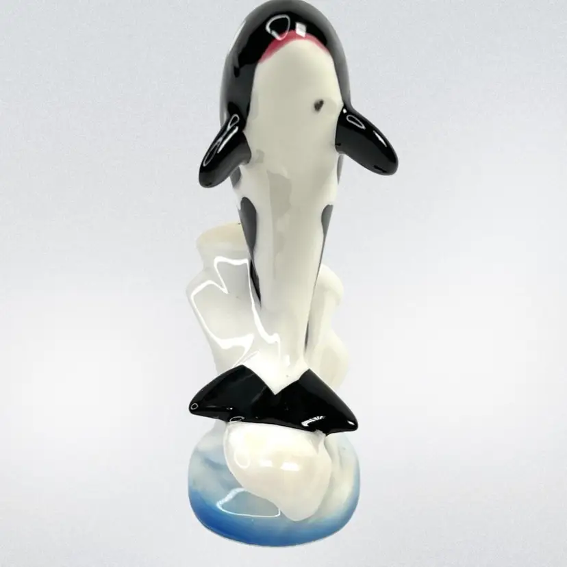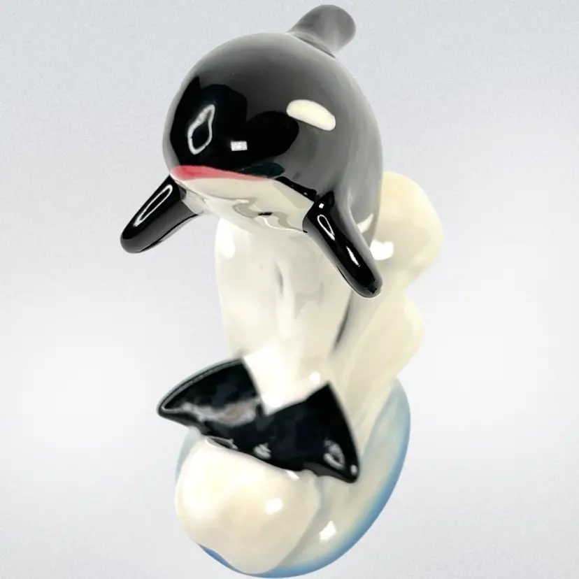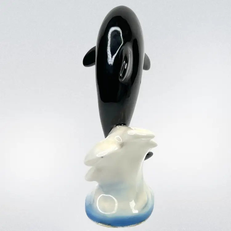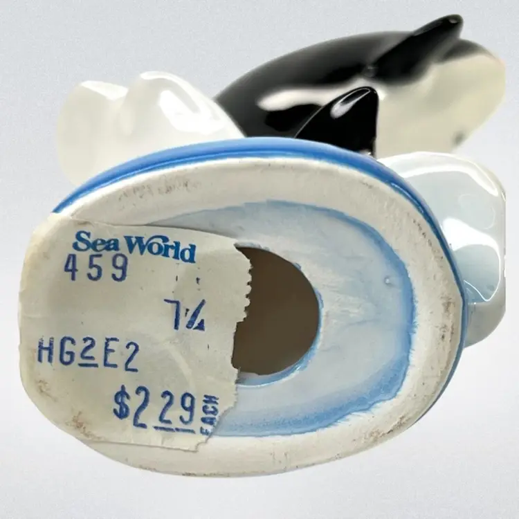 Vintage Sea World Original $2.29 Sea World Sticker On Bottom Orca Shamu Whale Ceramic Figurine 4โ H x 1-1/2โ W x 2-1/2โ D Weighs 3 ounces Condition: No chips or cracks. The 2 black spots on the white wave circled in last photo are merely paint splotches.