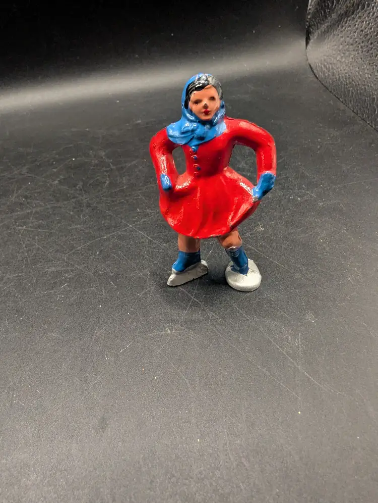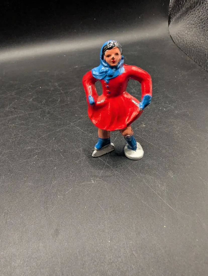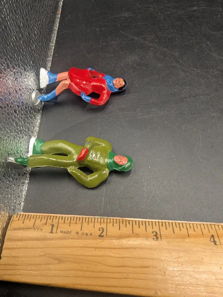 This is a fantastic Vintage Set of 2 Barclay Type Metal Hand Painted Skaters Boy and Girl. Please see all pictures for condition and measurements.