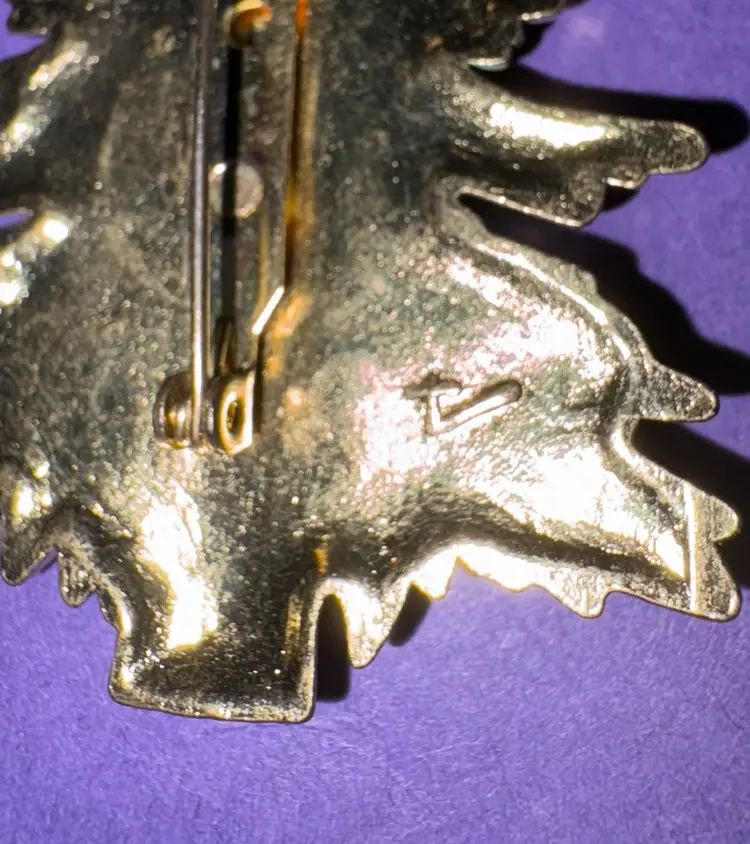 This is a beautiful signed Christmas tree brooch. I just am not familiar with this maker. It is in great pre-owned condition.