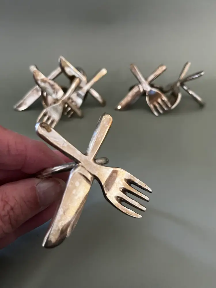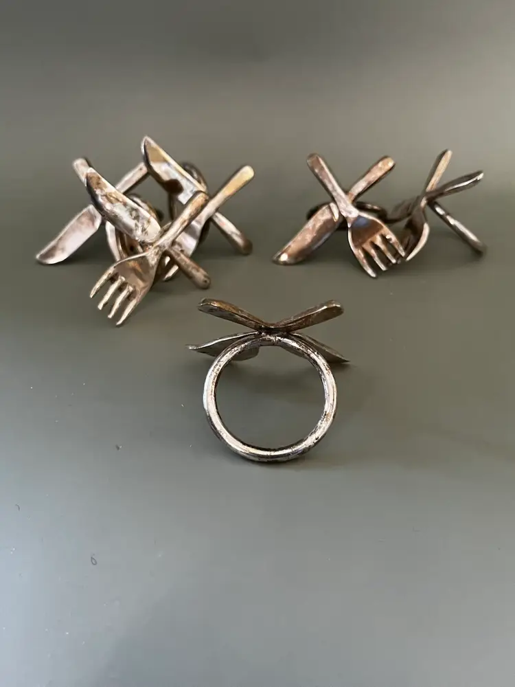 Elevate your dining experience with these elegant Pier 1 Imports Silver Plated Silverware Utensil Napkin Rings. Perfect for any occasion, these napkin rings are a must-have addition to your kitchenware collection. The set includes two boxes of four napkin rings, each with a beautiful silver plate.