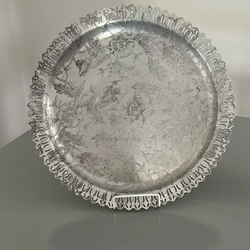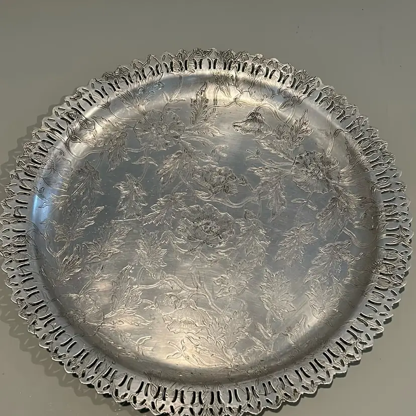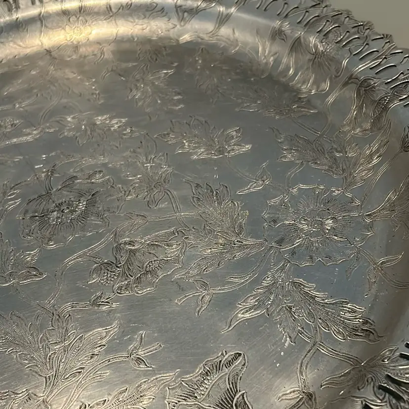 Beautiful vintage silver plated serving tray. Great detail work. Would be beautiful in any home.