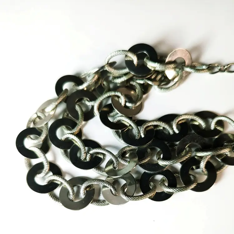Vintage Silver Tone Multi-Strand Chain Link Statement Necklace Adjustable Clasp. Condition is preowned. Vintage necklace featuring multiple strands of silver-toned chain links. Adjustable clasp ensures a perfect fit for various neck sizes. (FC03)