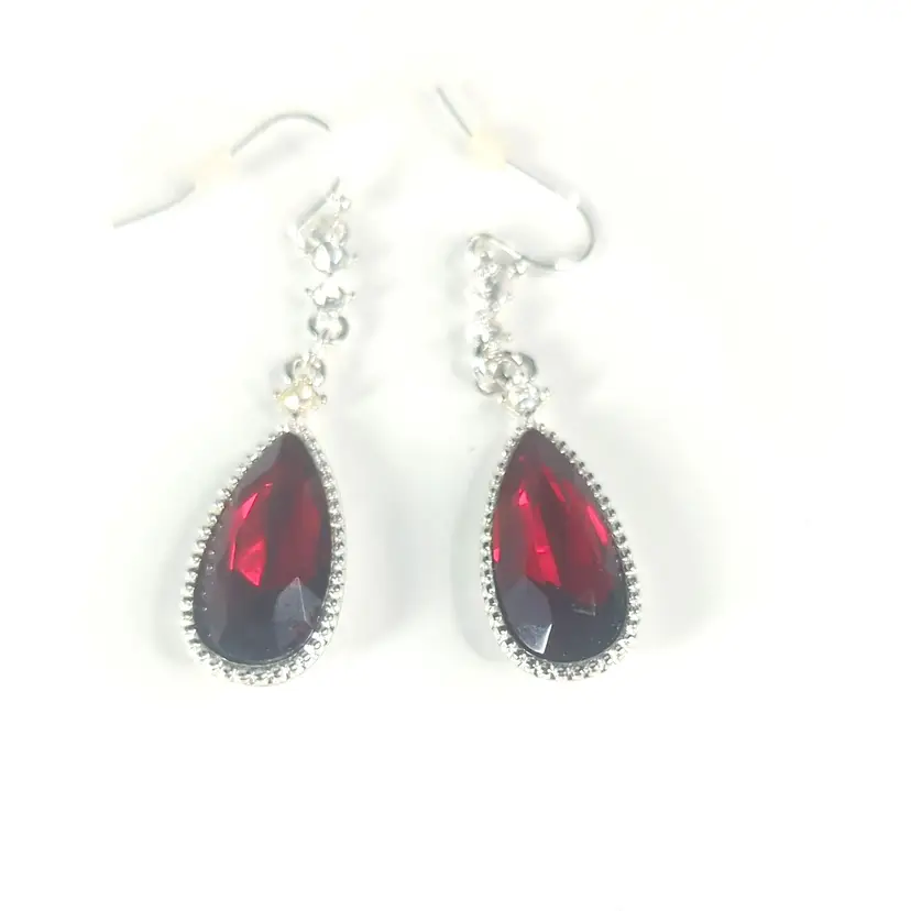 • Silver Tone • Red teardrop design • Dangle style • Approx. 2 inches in length