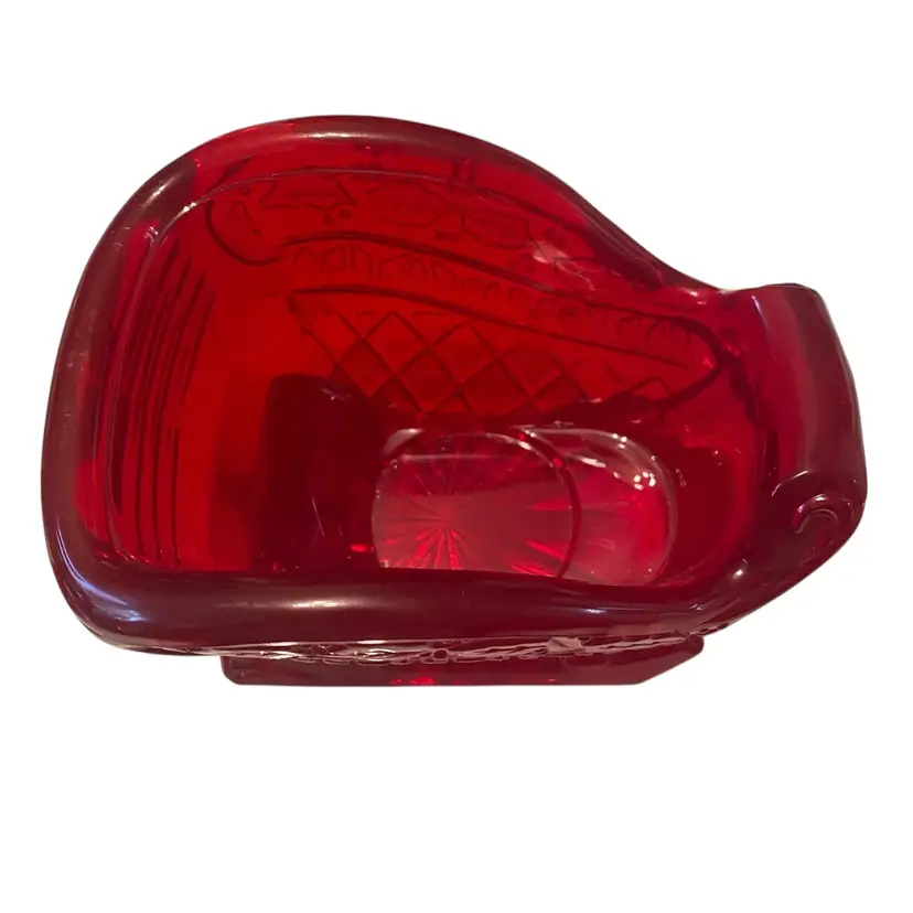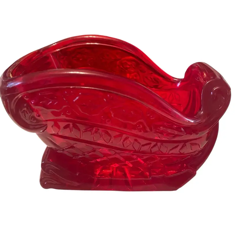 Vintage Sleigh Decoration Candy Dish Red Christmas Santa Heavy Molded Plastic 5"