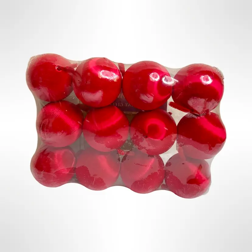 New old stock red spun satin Christmas ball ornaments, pack of 12.
