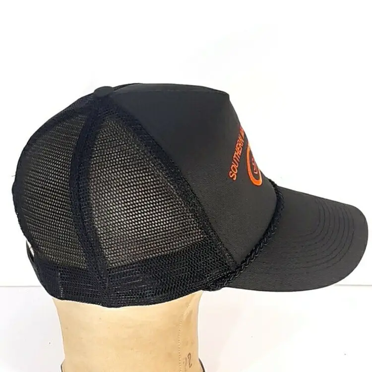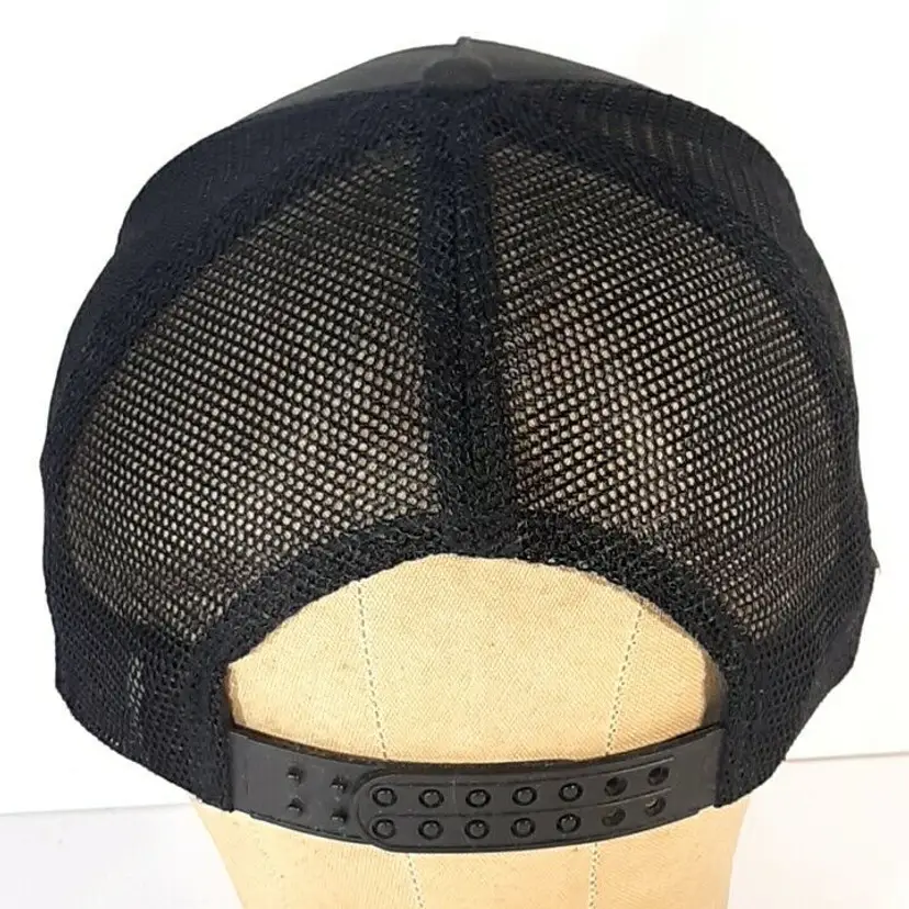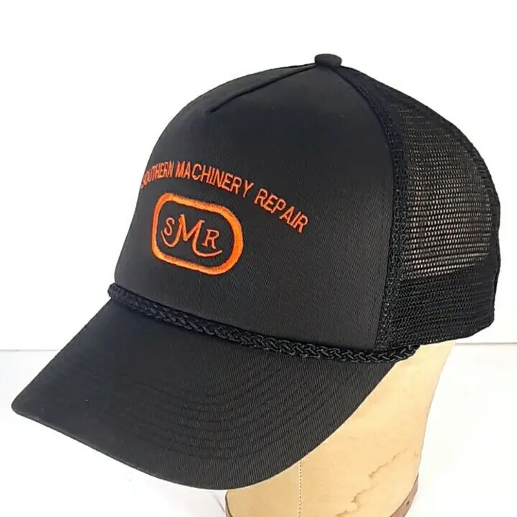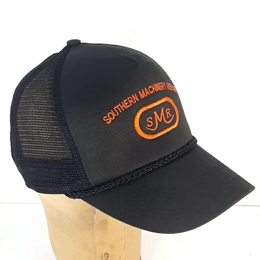 Pattern: Solid Character: none Occasion: Any Size: Adjustable Signed: No Color: Black Material: Cotton Fabric Type: Canvas Modified Item: No Vintage: Yes Brand: Southern Machinery Personalize: No Department: Men Unit Type: Unit Style: Trucker Hat Theme: USA Features: Adjustable, Breathable, Mesh Back Country/Region of Manufacture: United States Season: Fall, Spring, Summer, Winter Unit Quantity: 1 Handmade: No Adjustment Type: Snapback