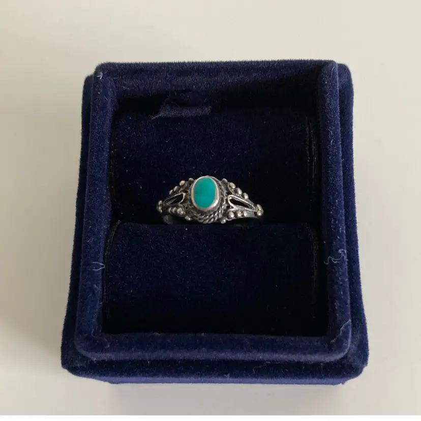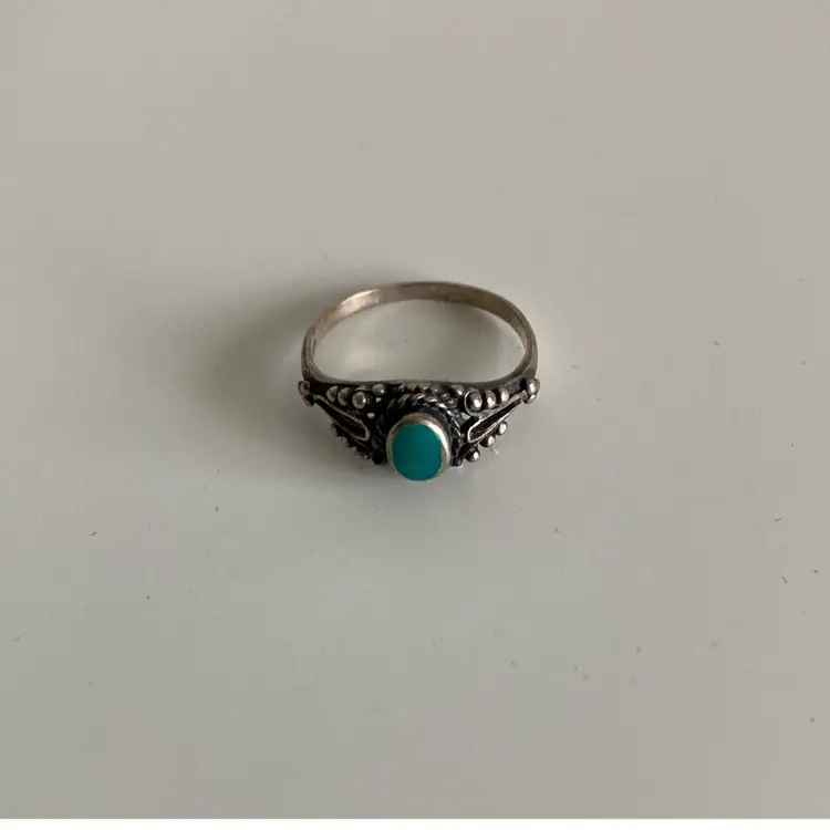 Vintage southwestern Navajo turquoise ring. Marked 925. This came from the Four Corners region. Size 5 1/2. The turquoise is on tye greener shade side. Common for turquoise pieces from this specific area.