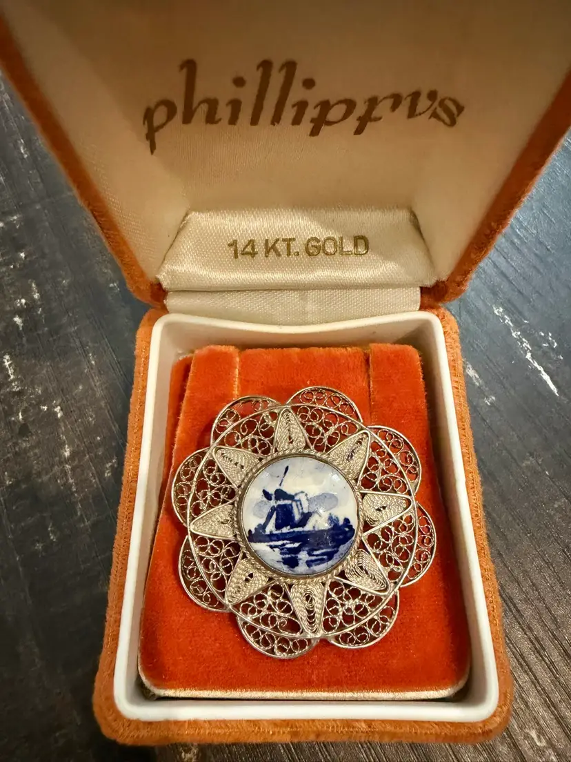 Vintage sterling silver Holland windmill brooch