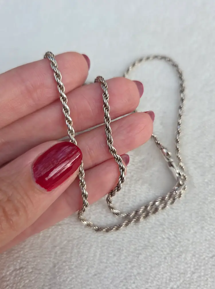 Nice classic solid sterling silver rope chain, nearly 9 grams in weight. It's in good condition from an estate, circa late 90s/y2k. Please see pictures for details and measurements.