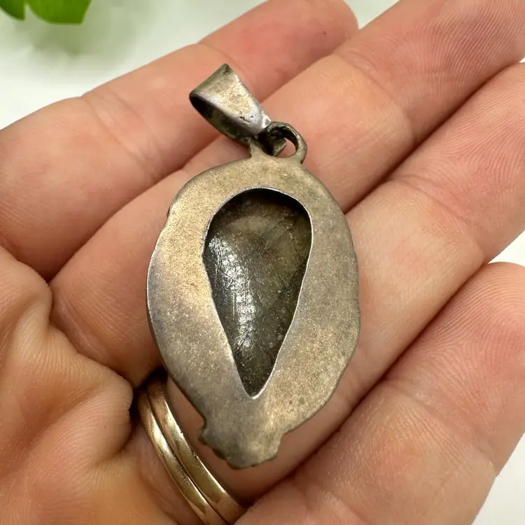1.75” long including the eyelet Pretty piece! Not stamped, but tested as 925 silver