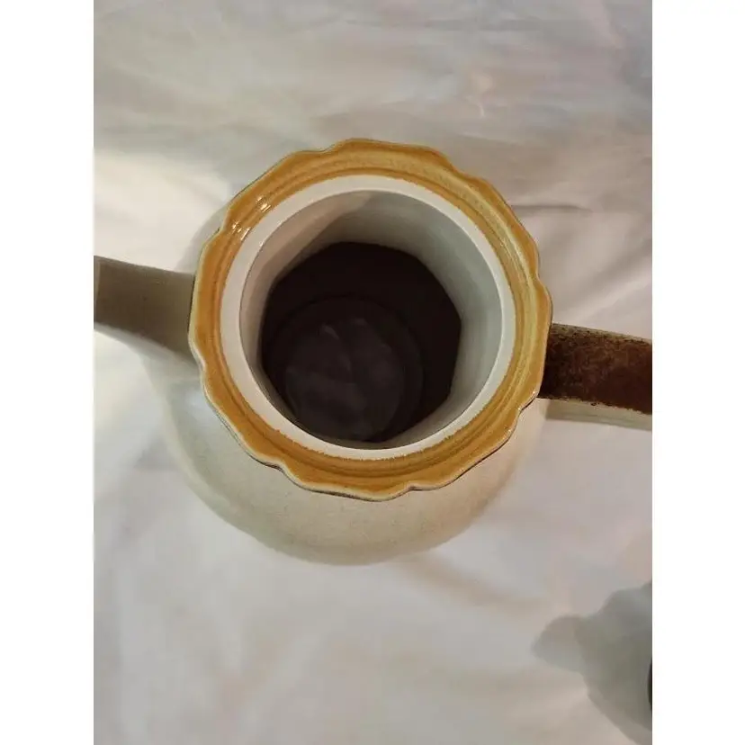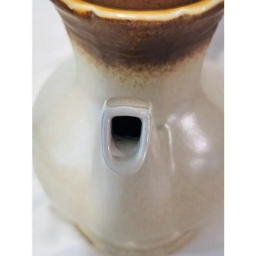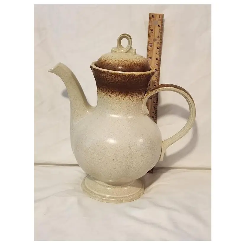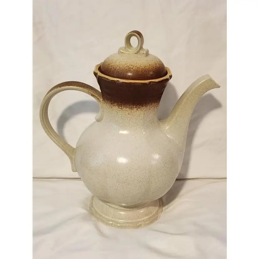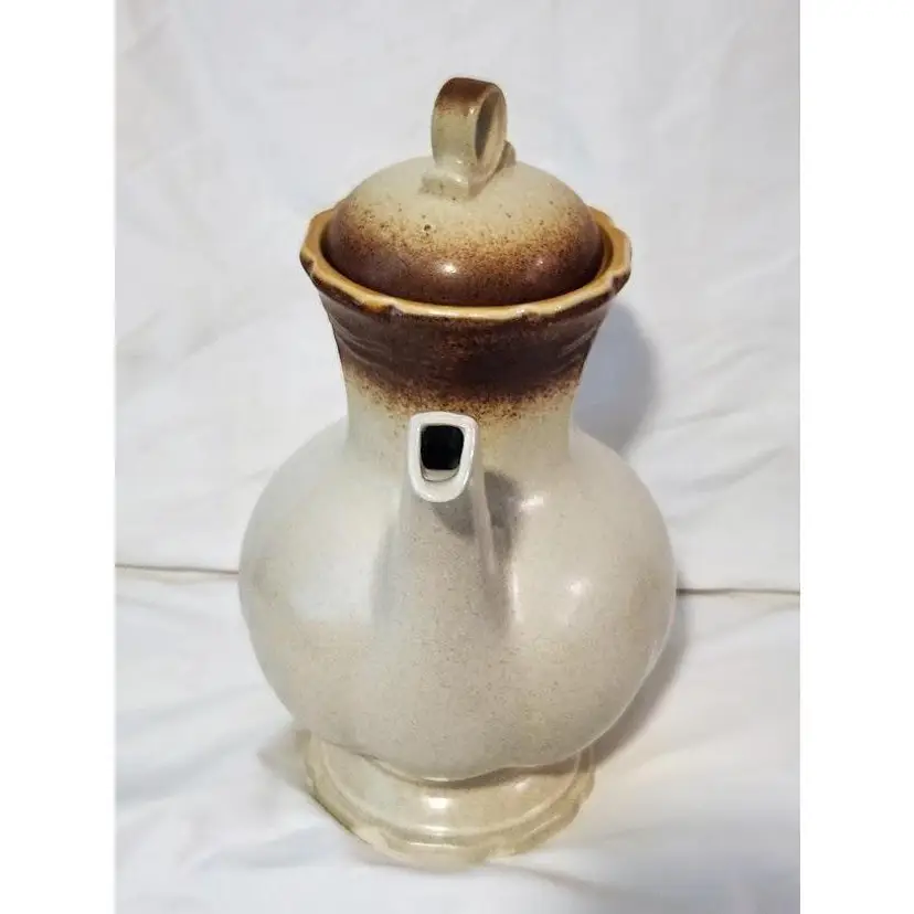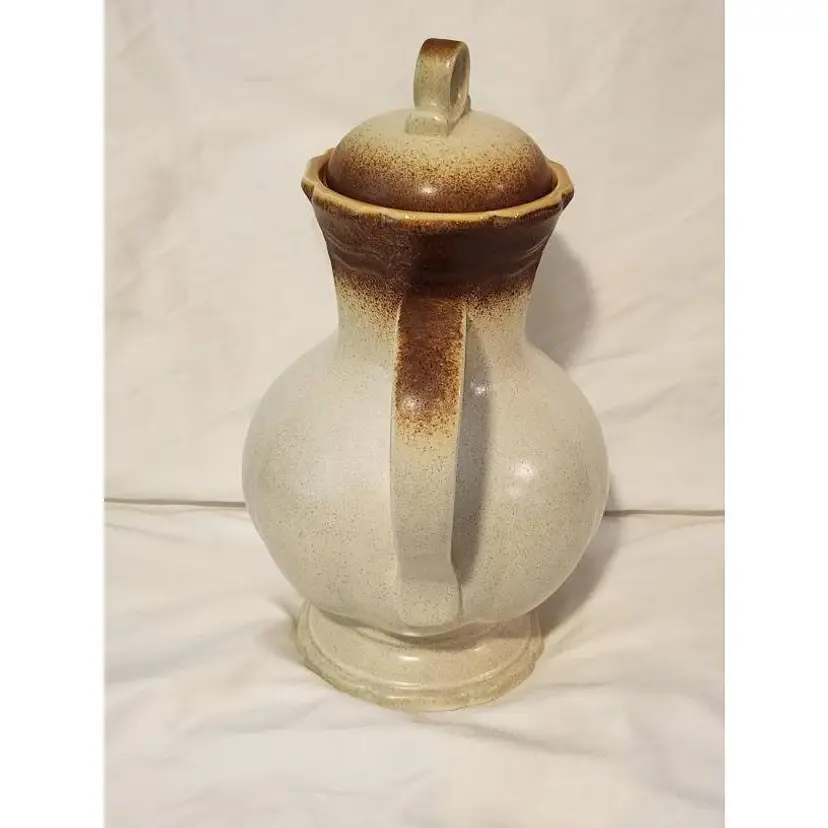 Brew your morning coffee in style with this charming vintage stoneware coffee pot. Featuring a speckled glaze and a sturdy handle, it's perfect for adding a rustic touch to your kitchen decor.