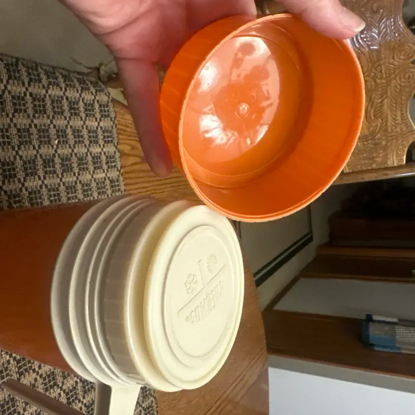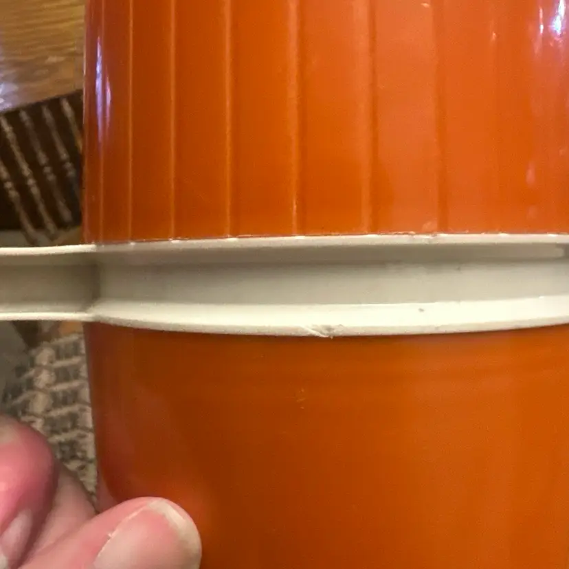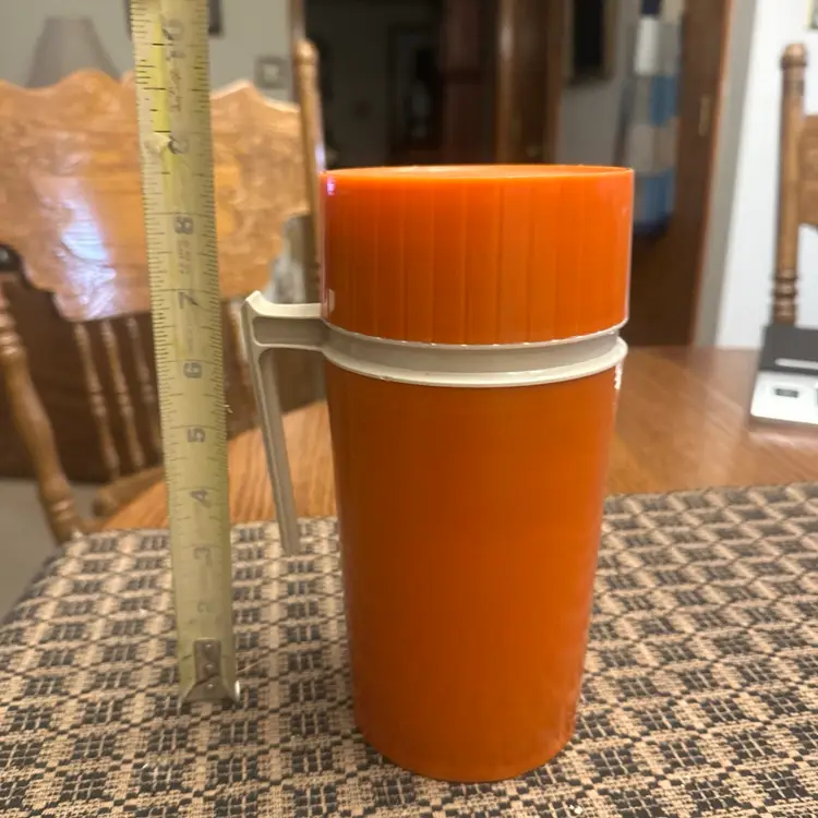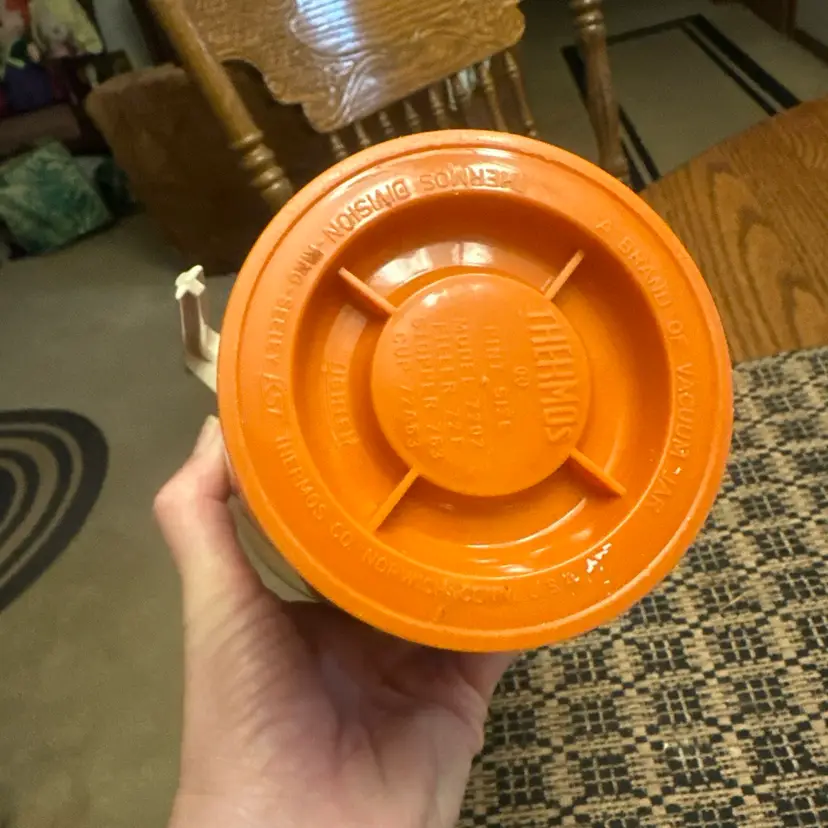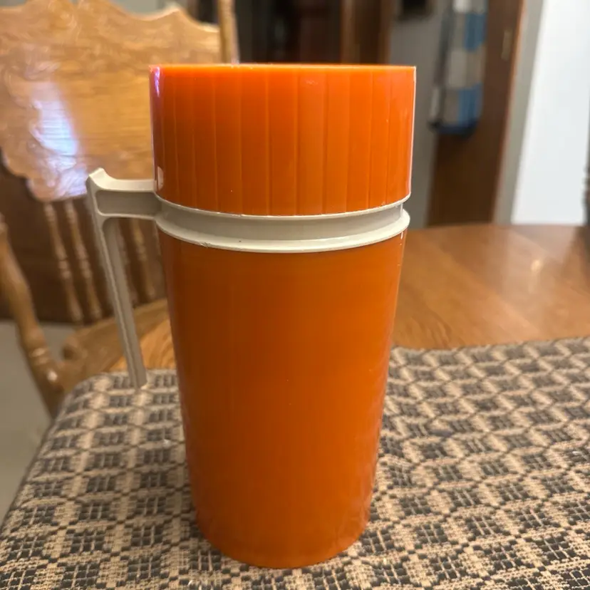 Vintage Thermos 7202 Pint Vacuum Bottle Bright Orange with Handle, Stopper & Cup