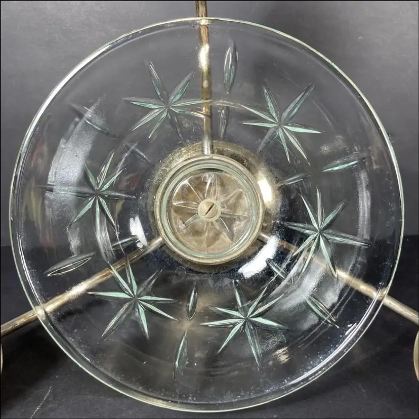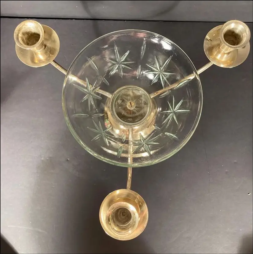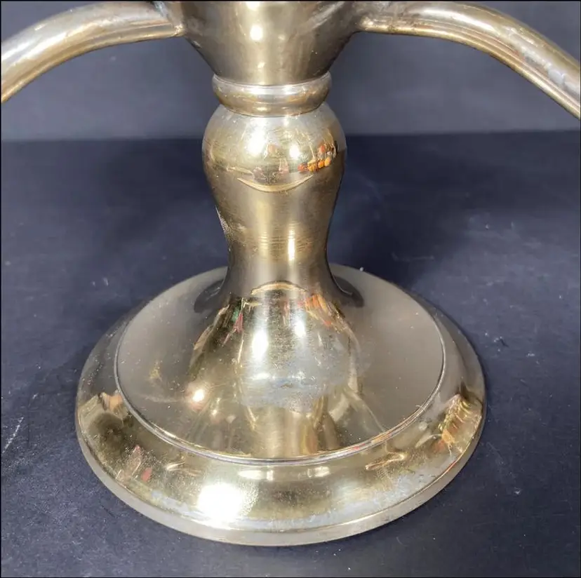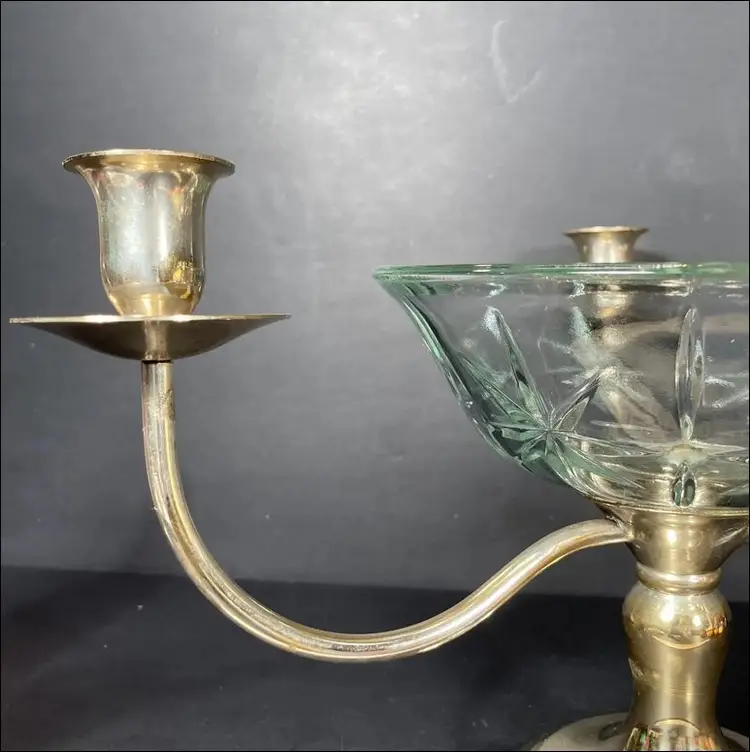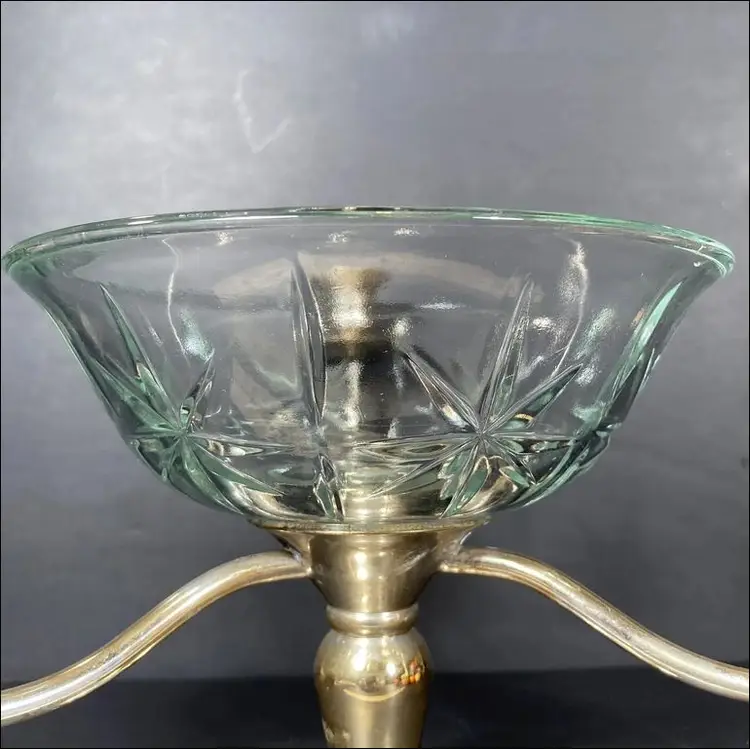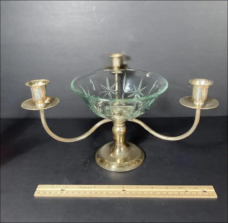 Classically designed vintage silver plate 3-arm candelabra with elevated pressed glass center bowl. Elegant and timeless design that speaks of an opulent lifestyle and attention to detail.