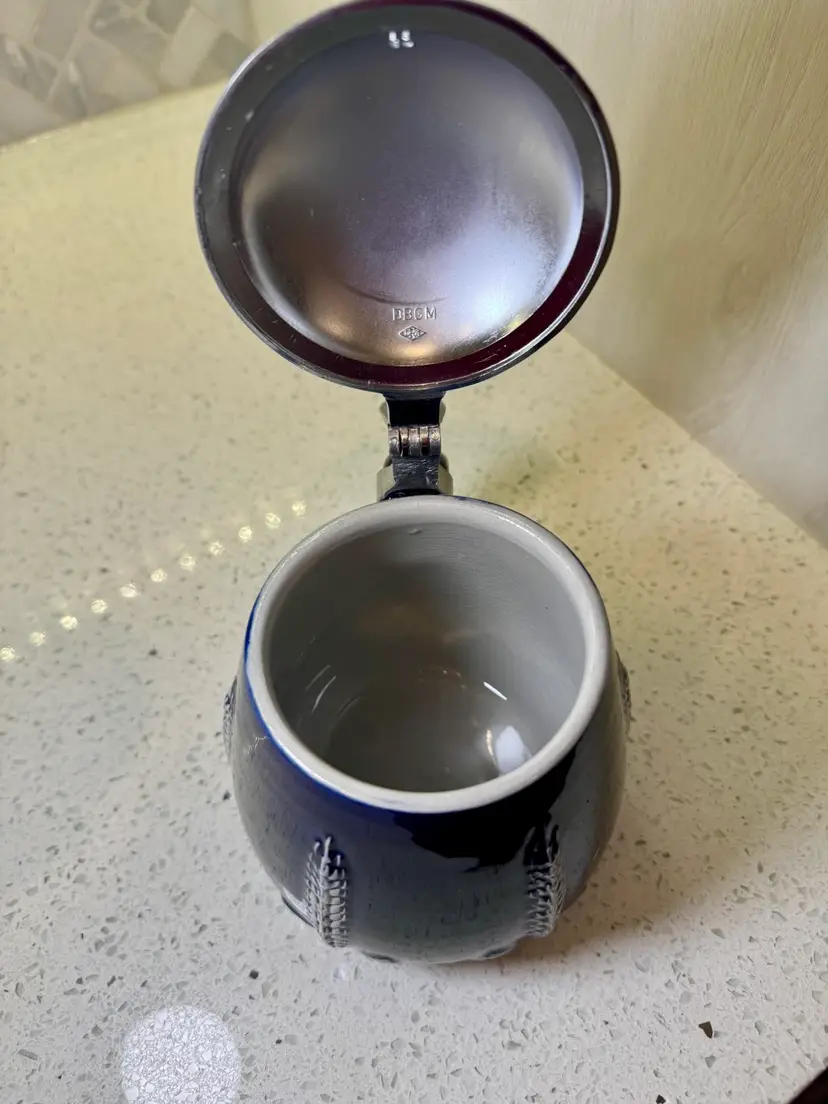 German beer stein. "DBGM" stands for "Deutsches Bundes-Gebrauchsmuster," which translates to "German Federal Registered Design".