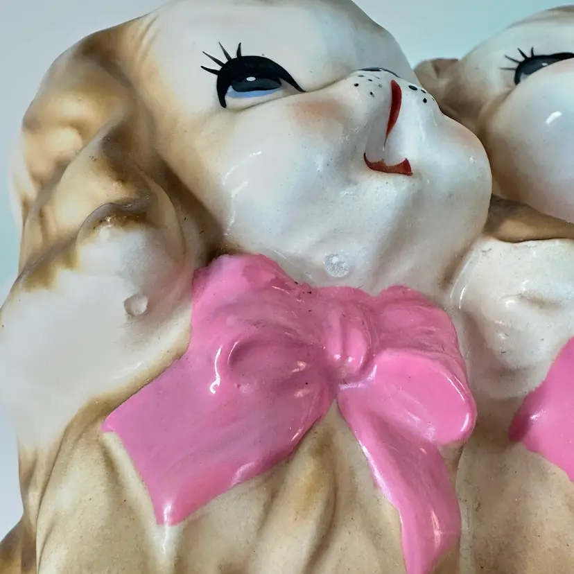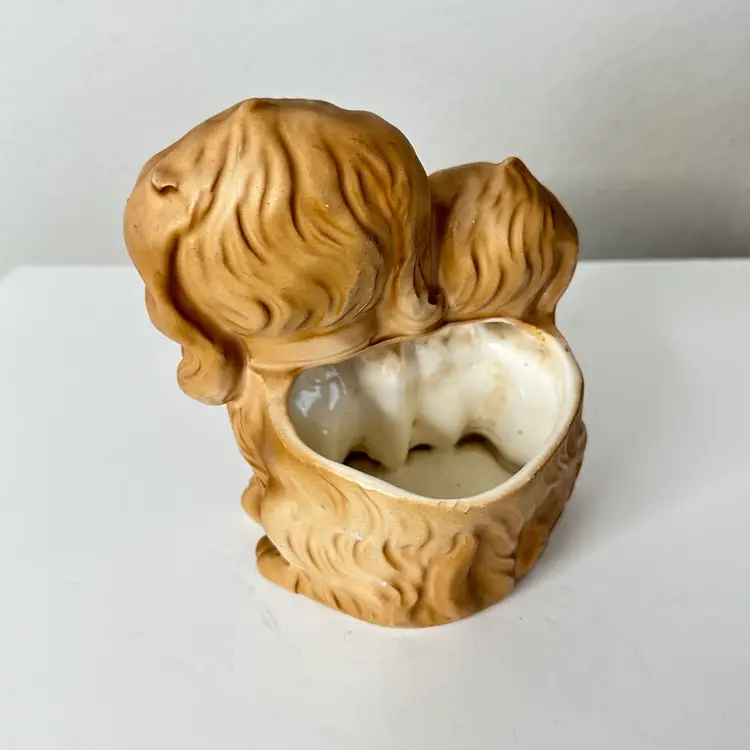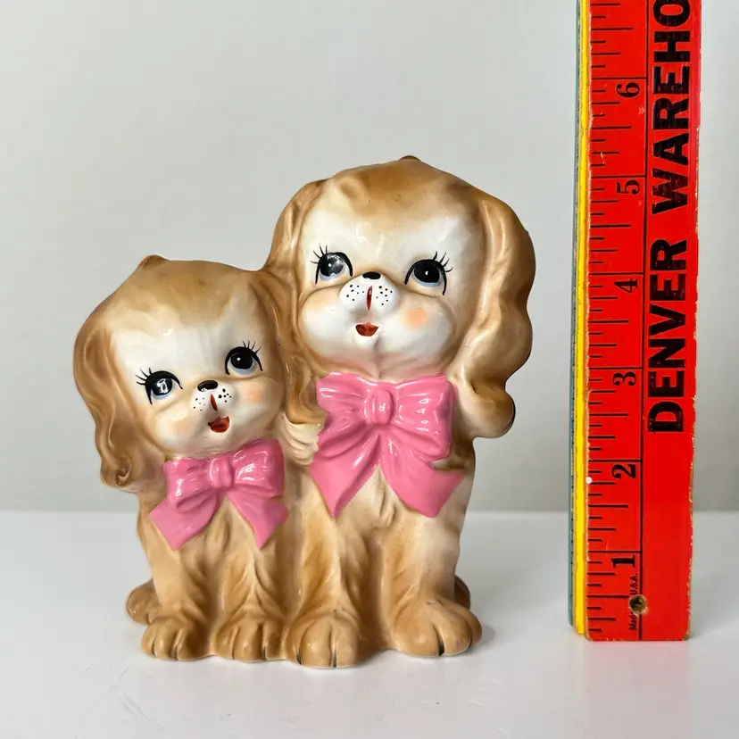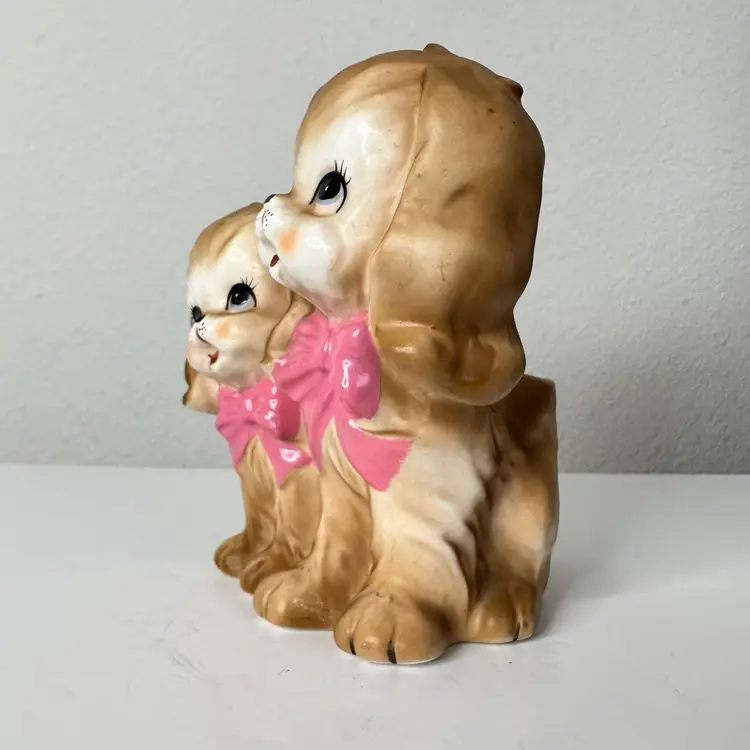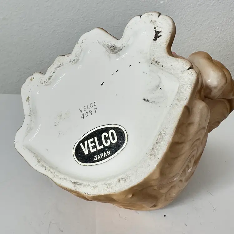 The Vintage Velco 4097 RARE Puppy Dog Planter Vase is a charming and unique collectible piece from the 1960s, made in Japan. This 5-inch ceramic planter features an all-over pattern with a cute kitten shape, perfect for all occasions and vintage decor enthusiasts. The multicolor finish adds a whimsical touch to any space, and its original design makes it a standout piece for collectors. Easy to care for with damp cloth cleaning, this planter exudes the style and theme of the 1960s era. Please see minor manufacturers flaw under doggy chin. Thanks for looking!
