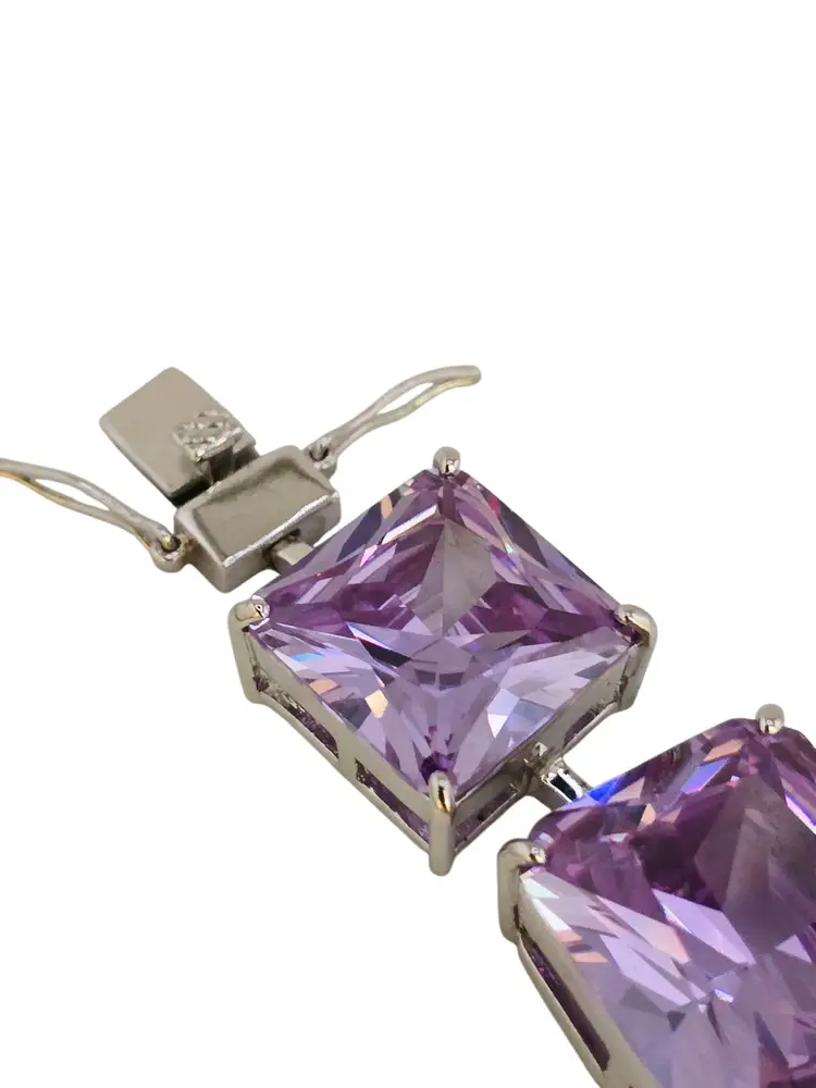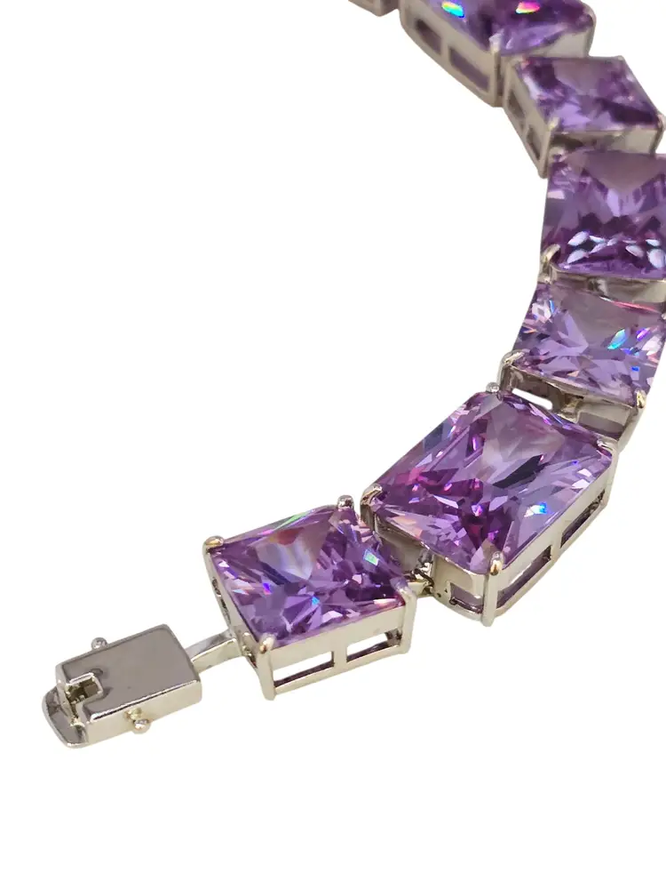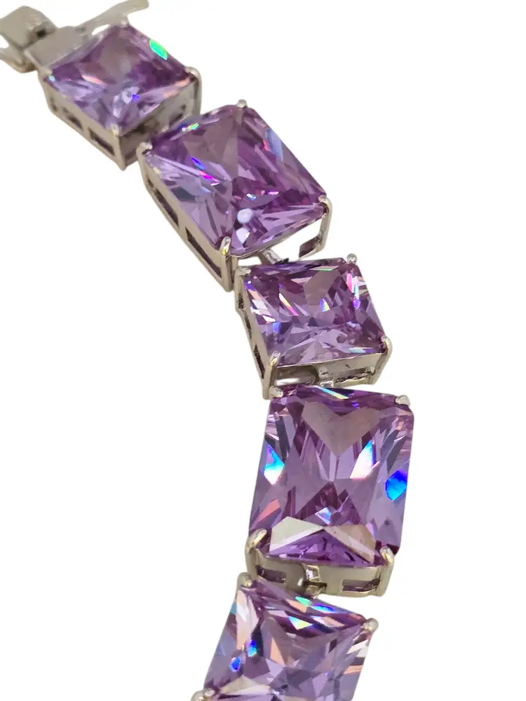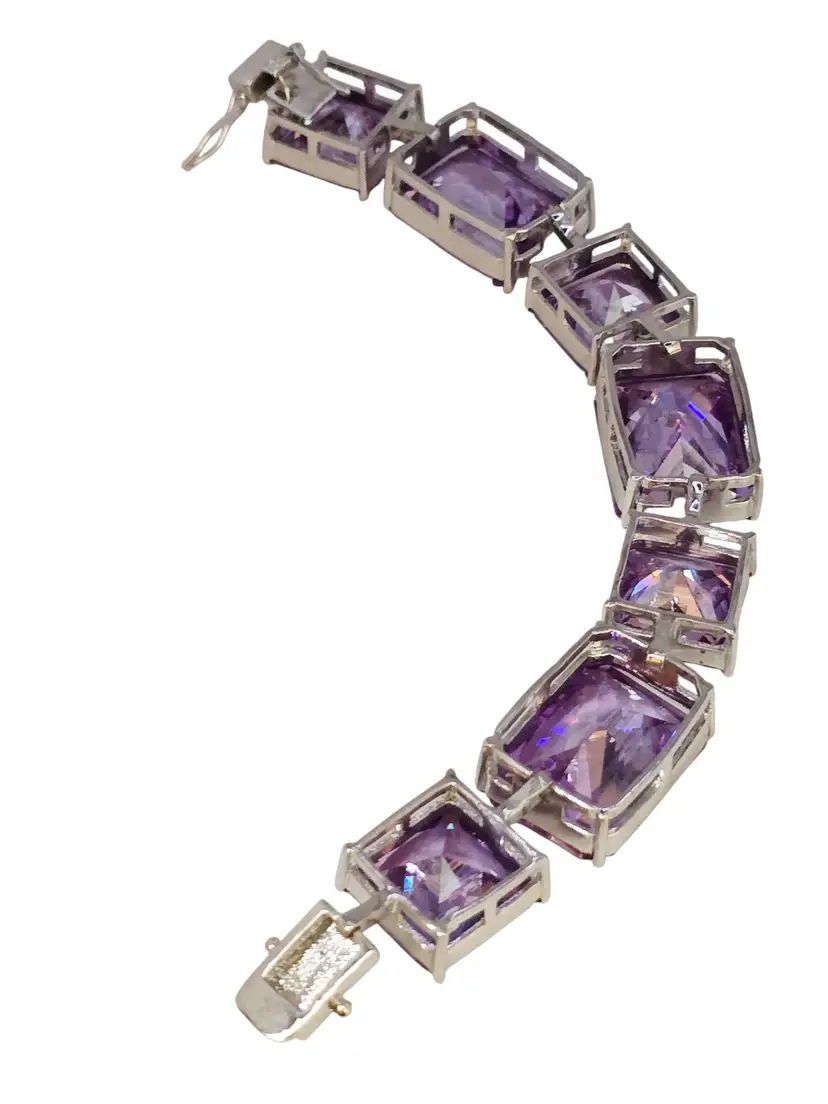 Vintage Well-Made Highly Faceted Lilac Glass Square-Cut Linked Bracelet (A9003)