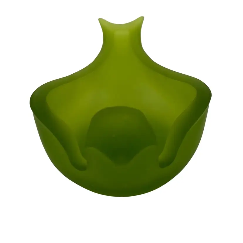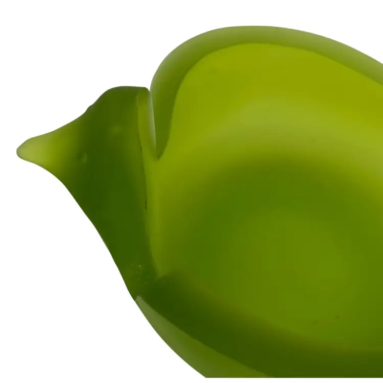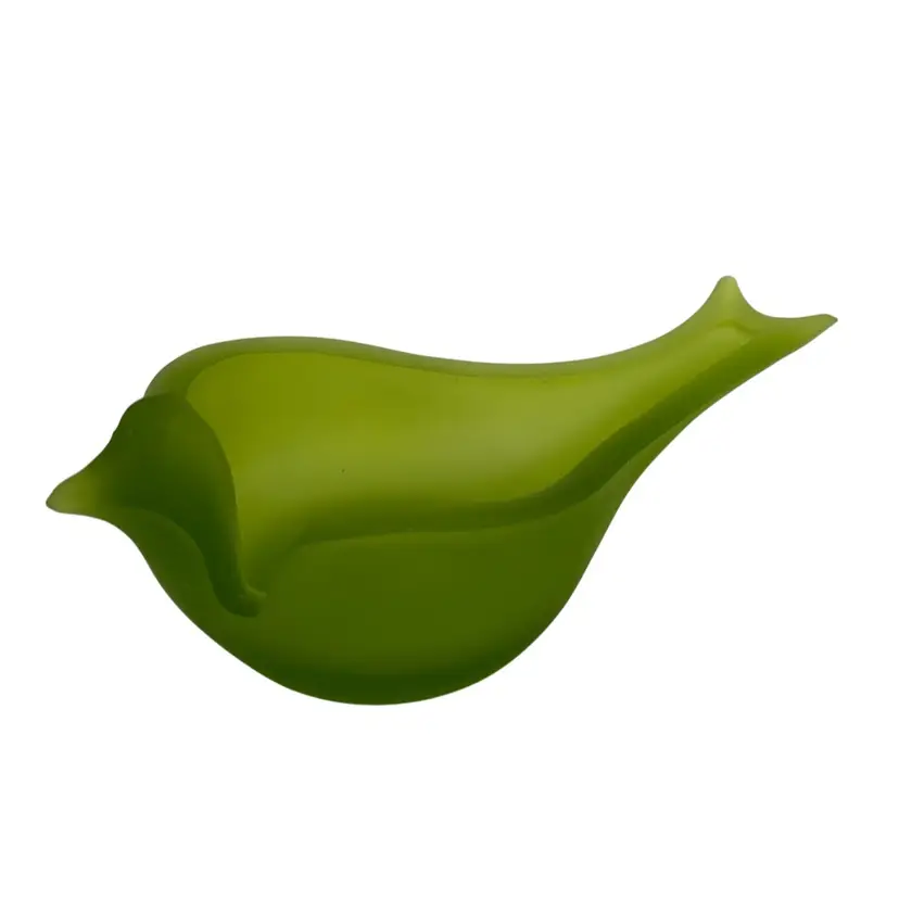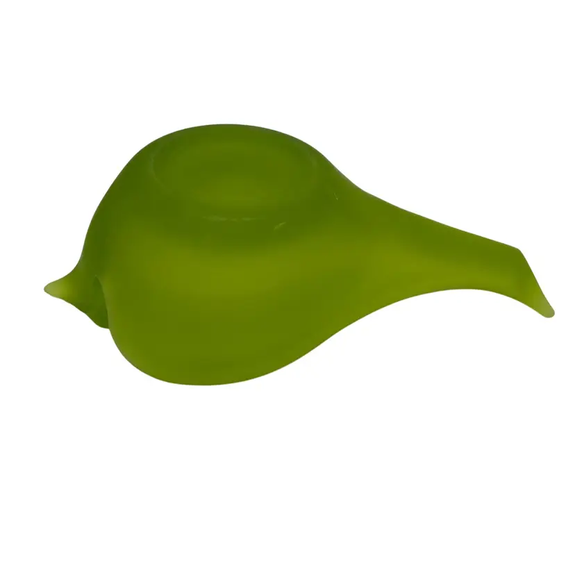 This vintage Westmoreland Glass, Green Mist Glass Bird Salt Dip is a beautifully crafted piece of art glass from Grapeville, Pennsylvania. Handmade in the mid-20th century, this pressed glass item is a charming addition to any collection or decorative display, measuring 5.25 inches in length and 2.75 inches in width. Based on my research, I believe this piece was originally a salt dip (cellar), where the sculpted insets to either side of the head were used for spoons. However, this piece would work very well as a candle holder (tea light or votive) or as a trinket dish. It has a lovely matte (satin glass) finish.