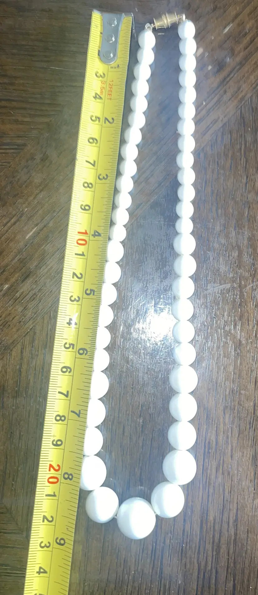 Made up of a neutral graduated row of round white glass beads.