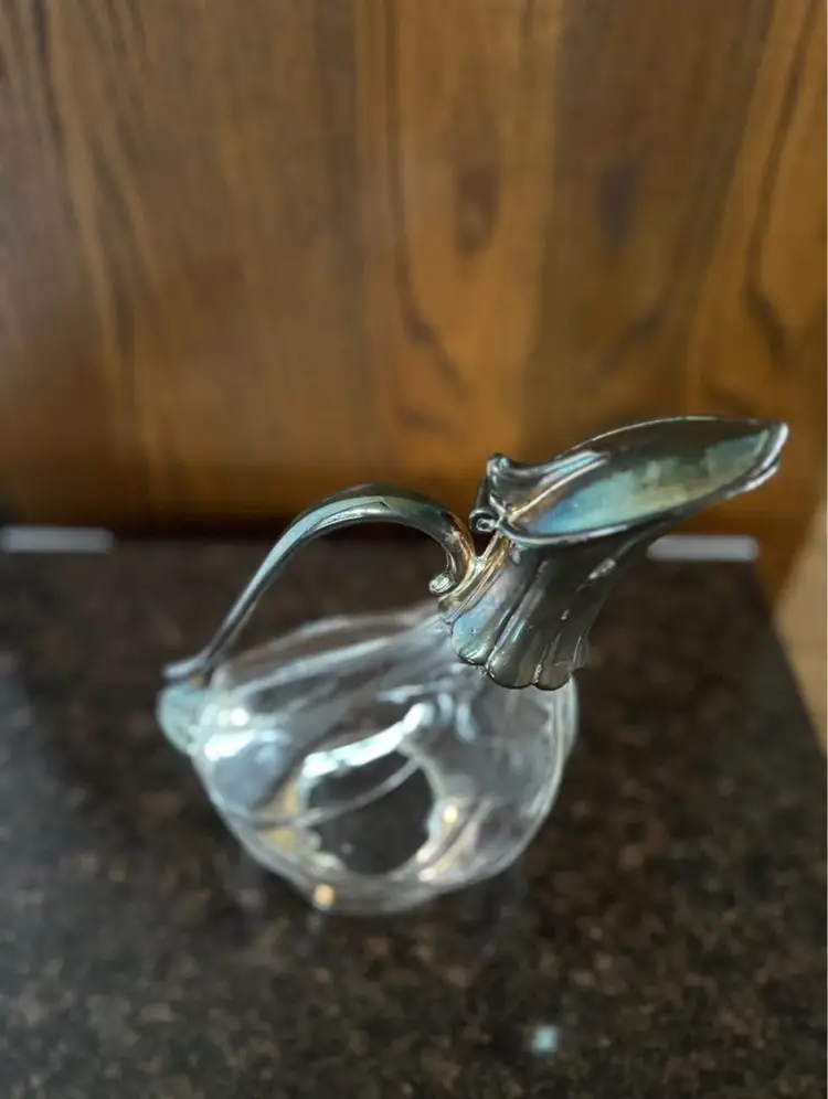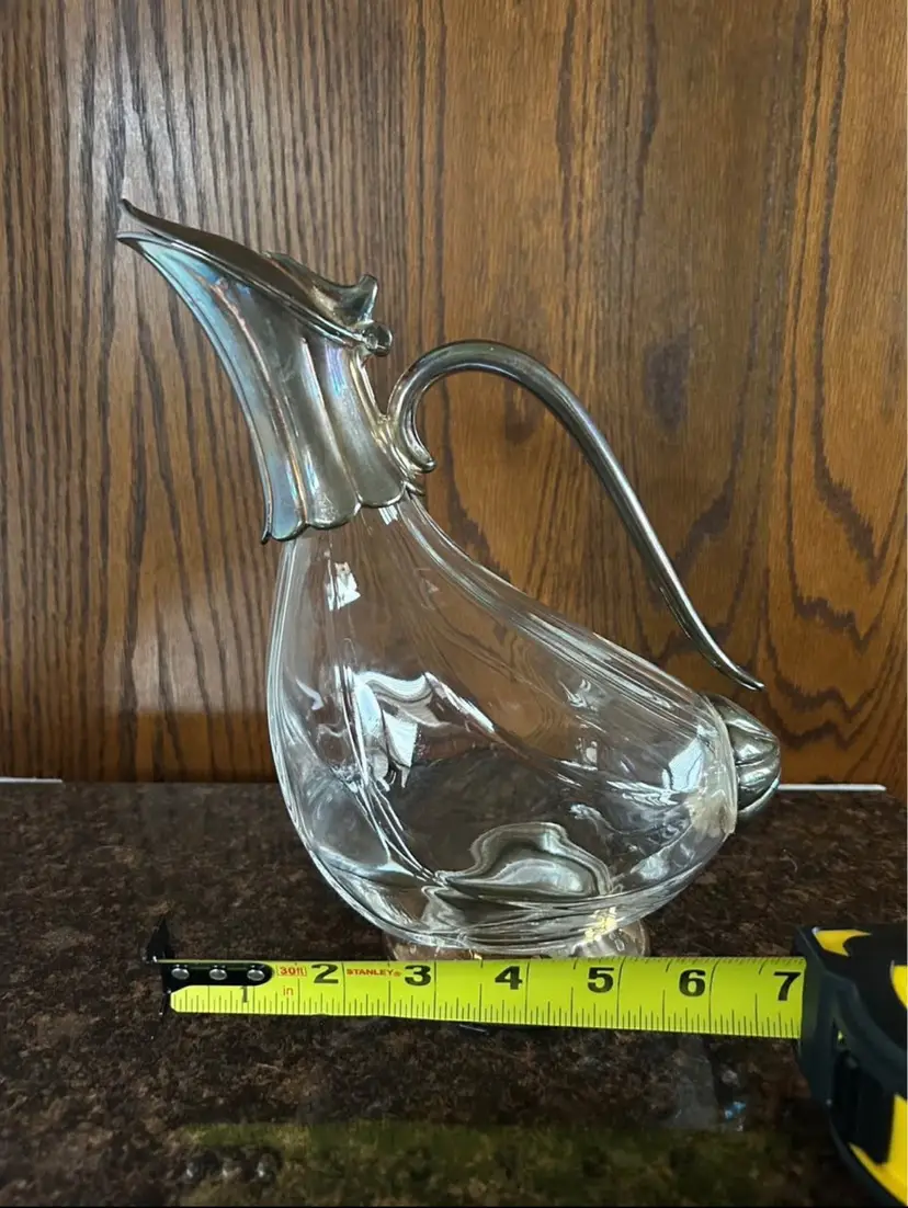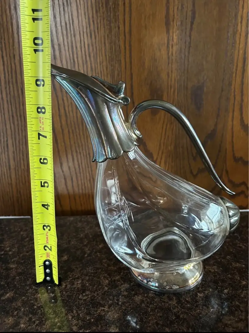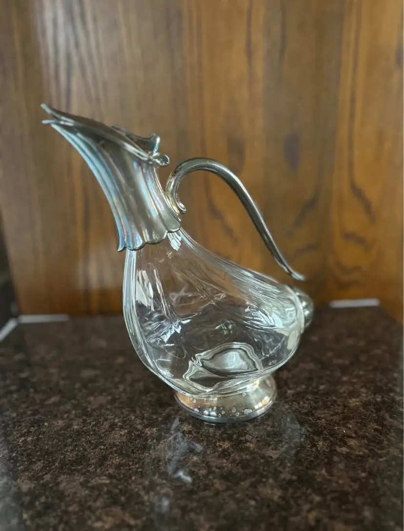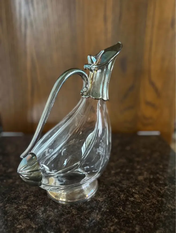 Stunning vintage duck wine decanter with silver plated detailing. Duck decanter sits on a silver plated base, silver plated handle, neck, and beak. A unique piece in beautiful vintage condition.