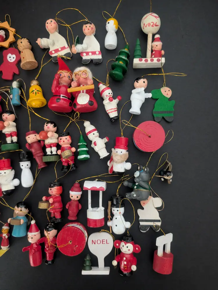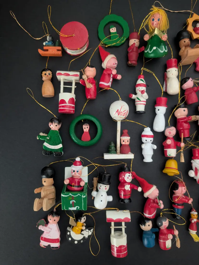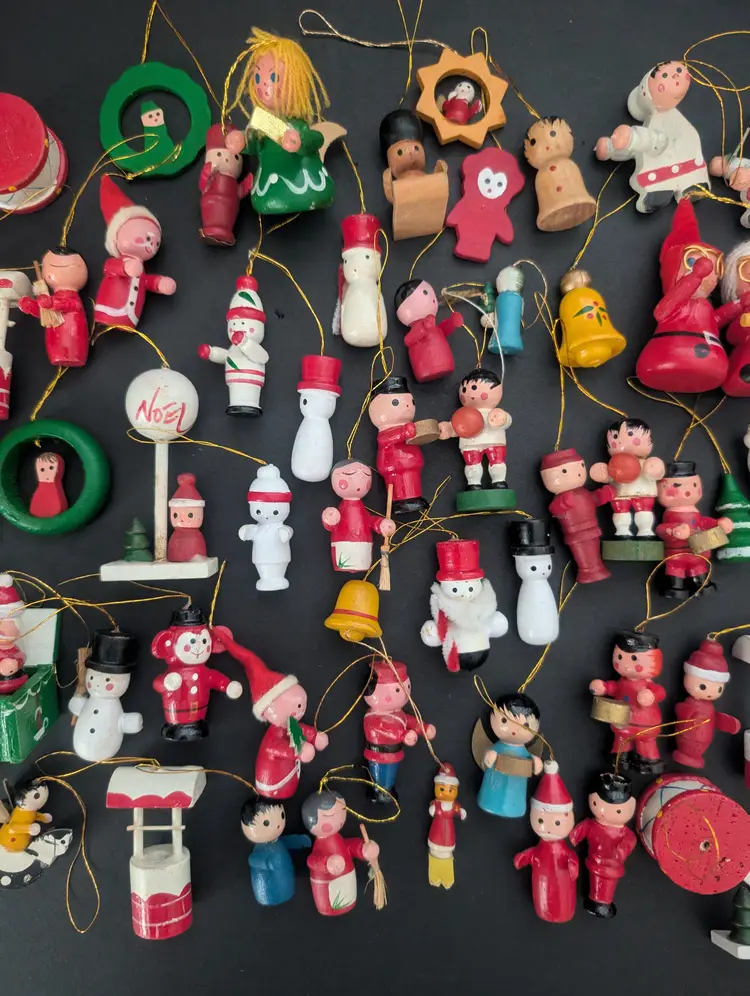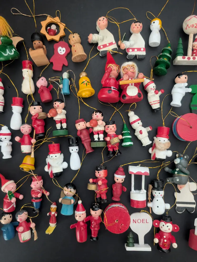 Some ornaments show minor paint wear consistent with age. Average ornament height = 2 inches.