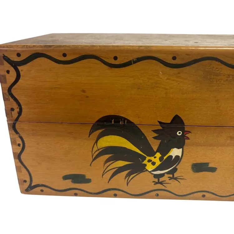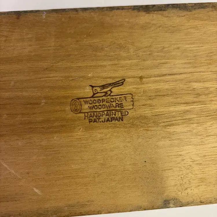 Divided on inside into 4 compartments Dove tail joints Great condition Mid-century Hand painted in Japan