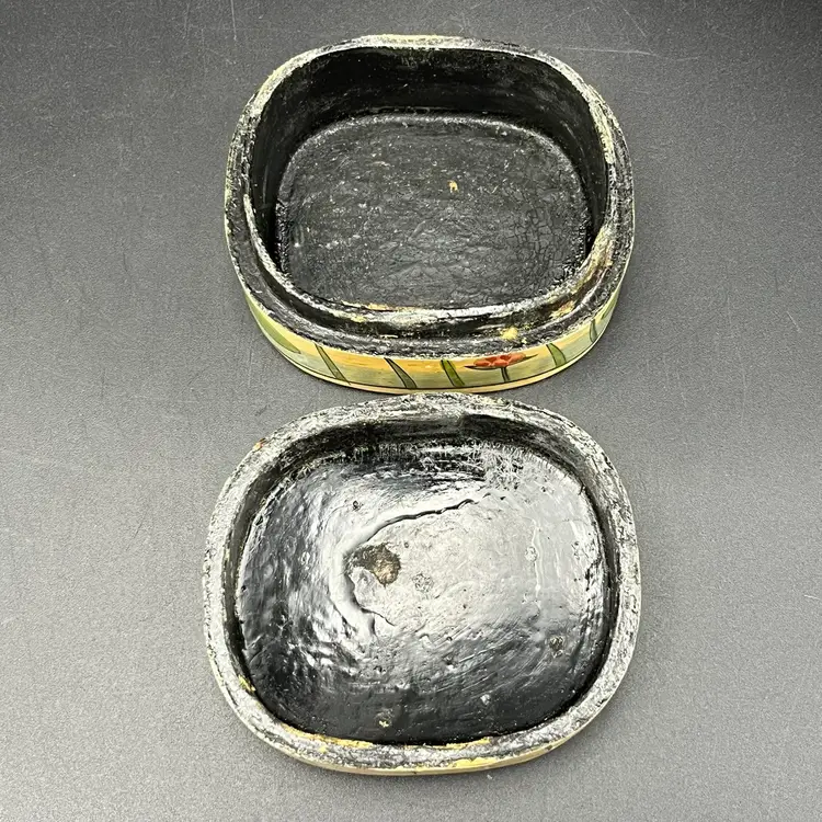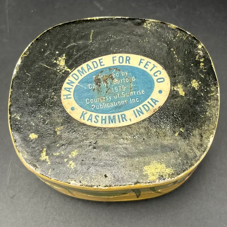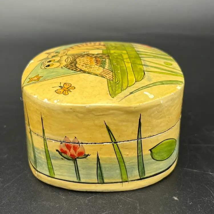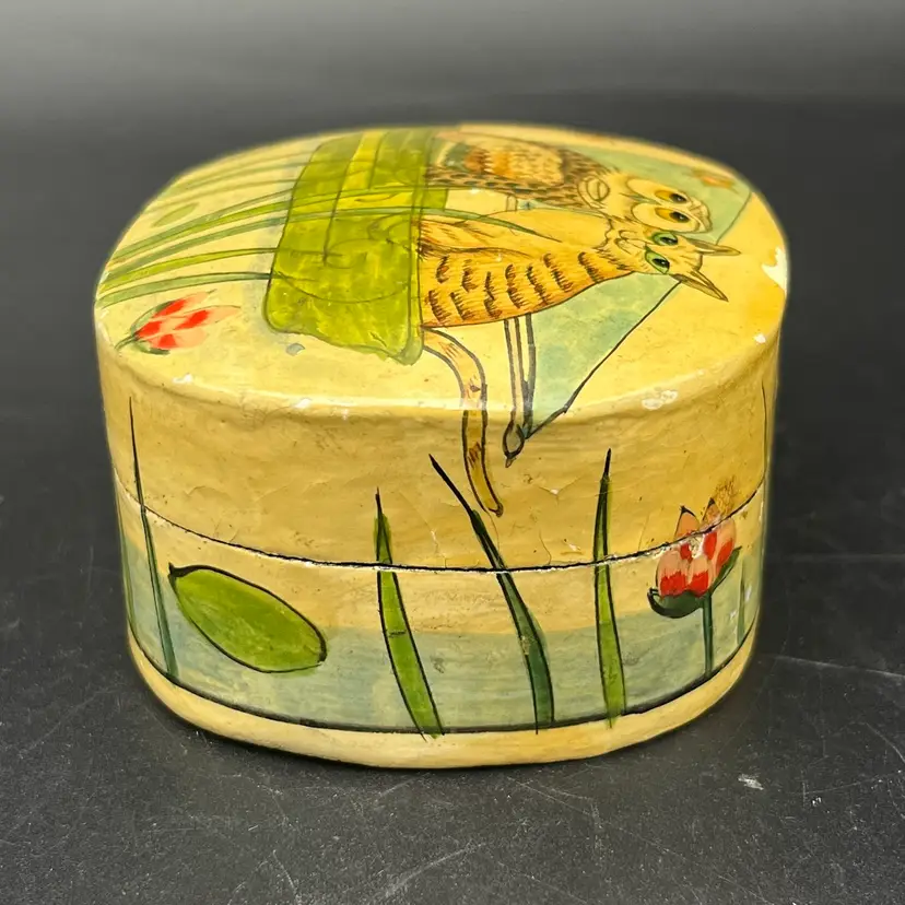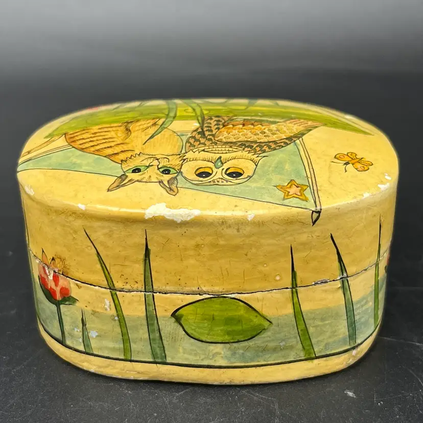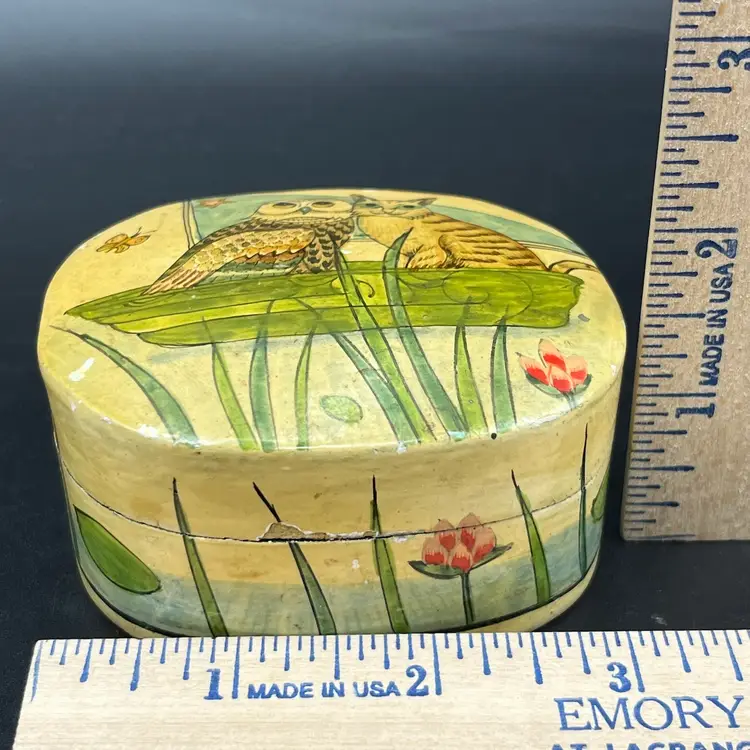 Vtg 1979 CAROLYN BARFORD KASHMIR TRINKET BOX The Owl and The Pussycat Wood & Lacquer Some Chipping & Yellowing To The Lacquer Please See All Pictures Feel Free To Contact Me With Any Questions I Do Combine Shipping