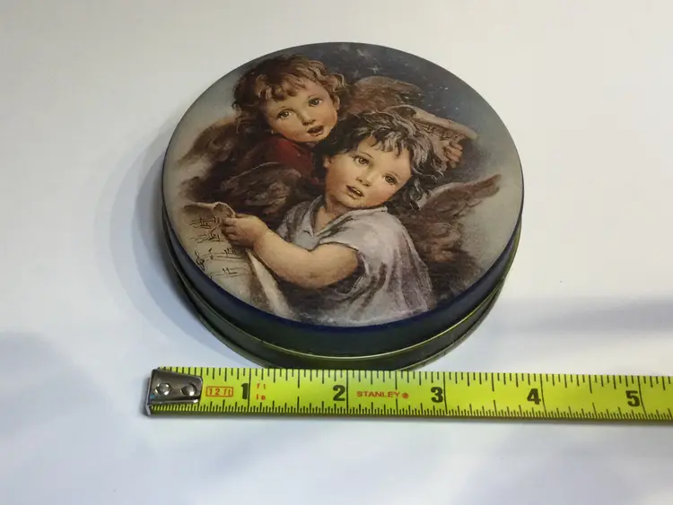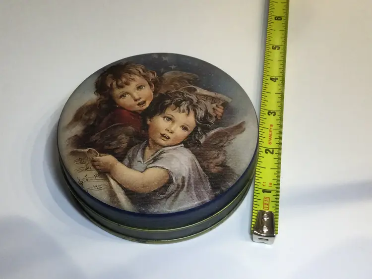 This vintage 1996 set of 4 Cherub Angel coasters and coaster holder by House of Lloyd features a round shape with a multicolor design of angels or cherubs. Made of cork and metal, these coasters are approximately 4 inches in diameter and have an item length and width of 4 inches. Perfect for all occasions, this set adds an angelic touch to any home or garden decor with its themed design. Made in Taiwan, this set is a unique and charming addition to any bar tools or kitchen accessories collection. This set was stored and never used. Stock No 530874