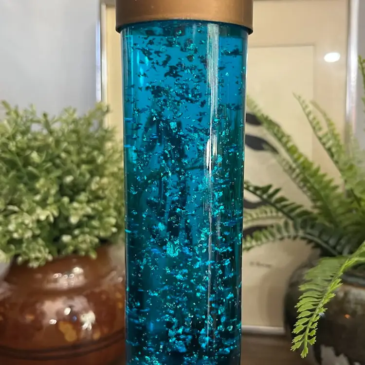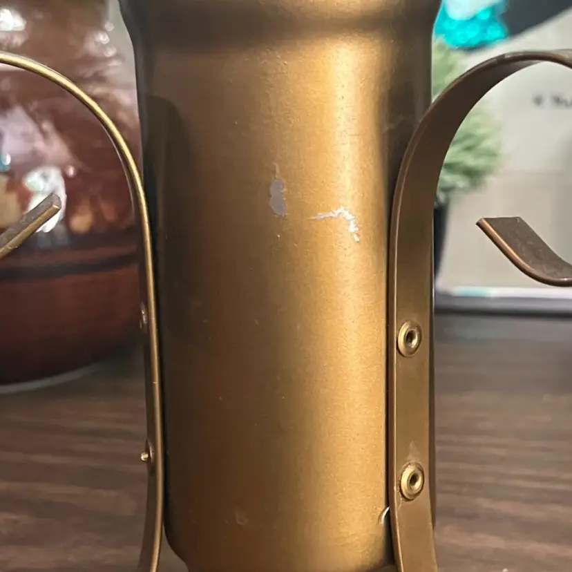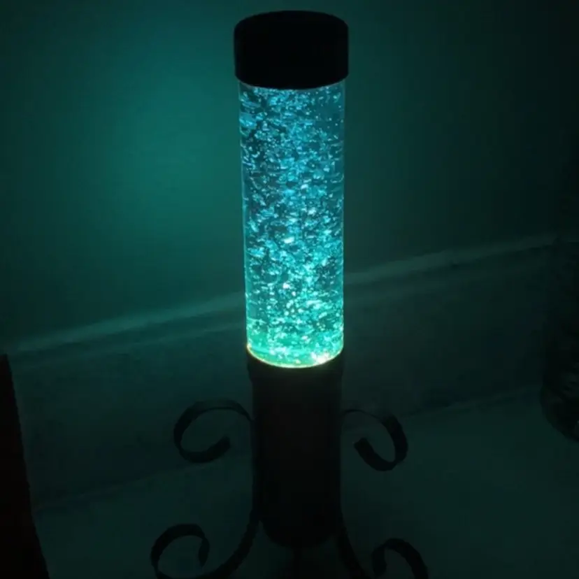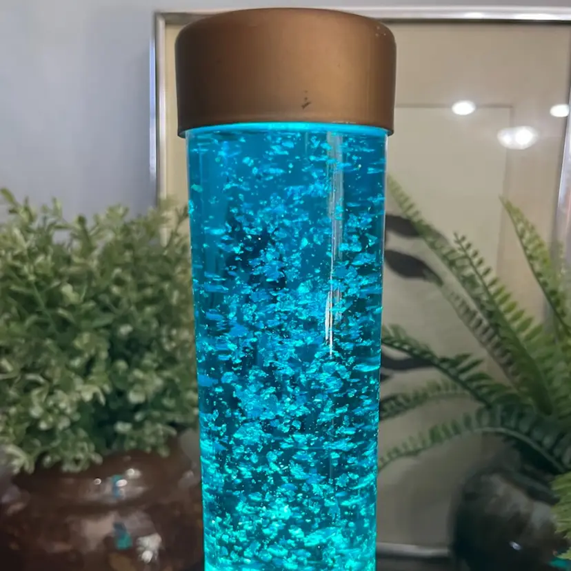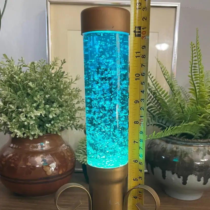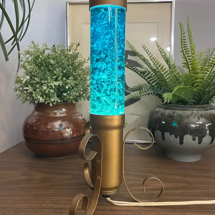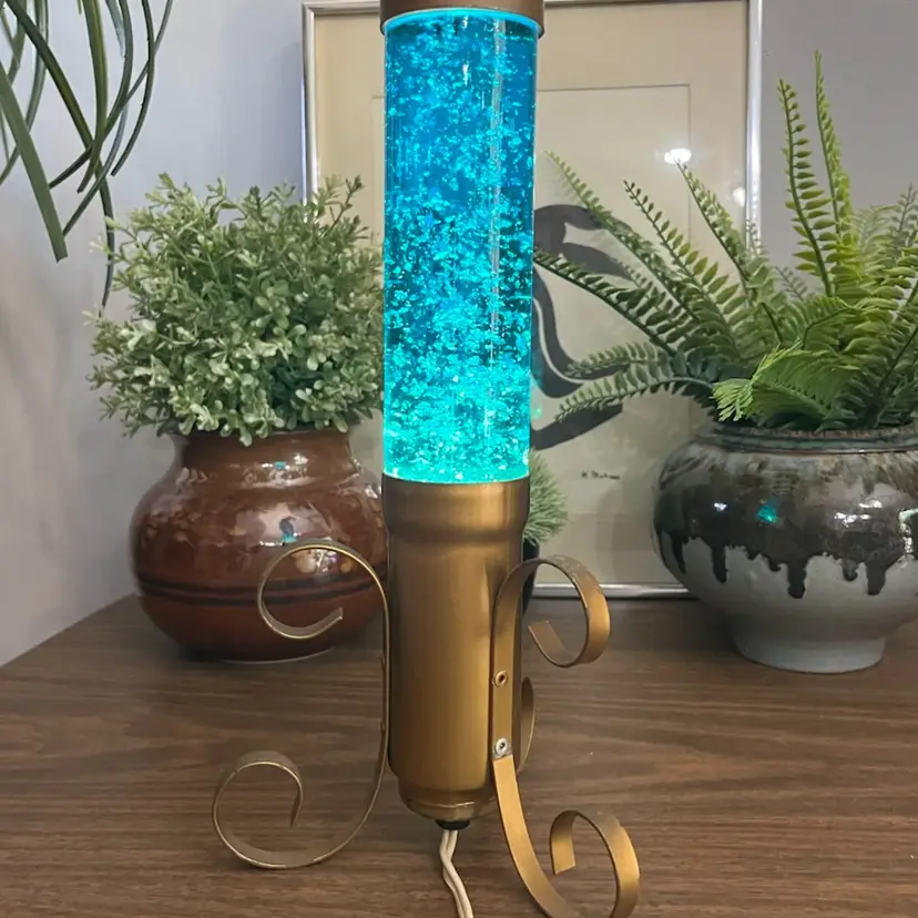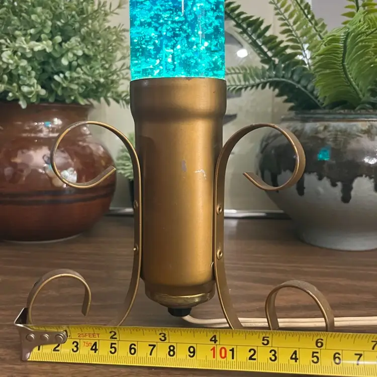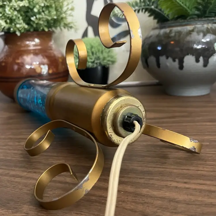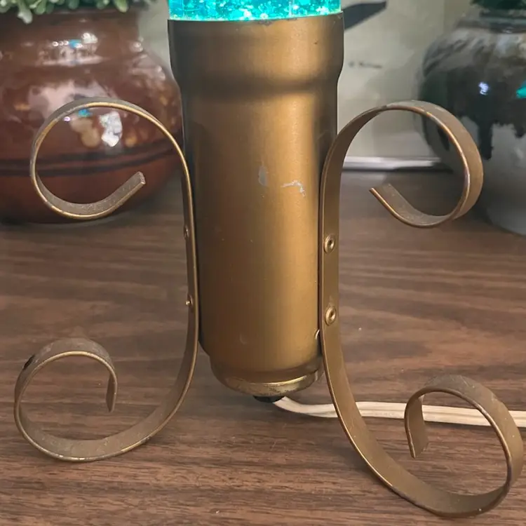 Lamp works, but is a little finicky. Moving the lamp can cause it to flicker off and back on. There is cosmetic wear to the gold colored base as shown. I believe the glass portion of the lamp should remove from the base to change the bulb, but I am unable to remove the glass tube from the base. Selling this motion lamp in as-is condition. Measures approximately 13” tall and 6” wide. Message me with any questions.