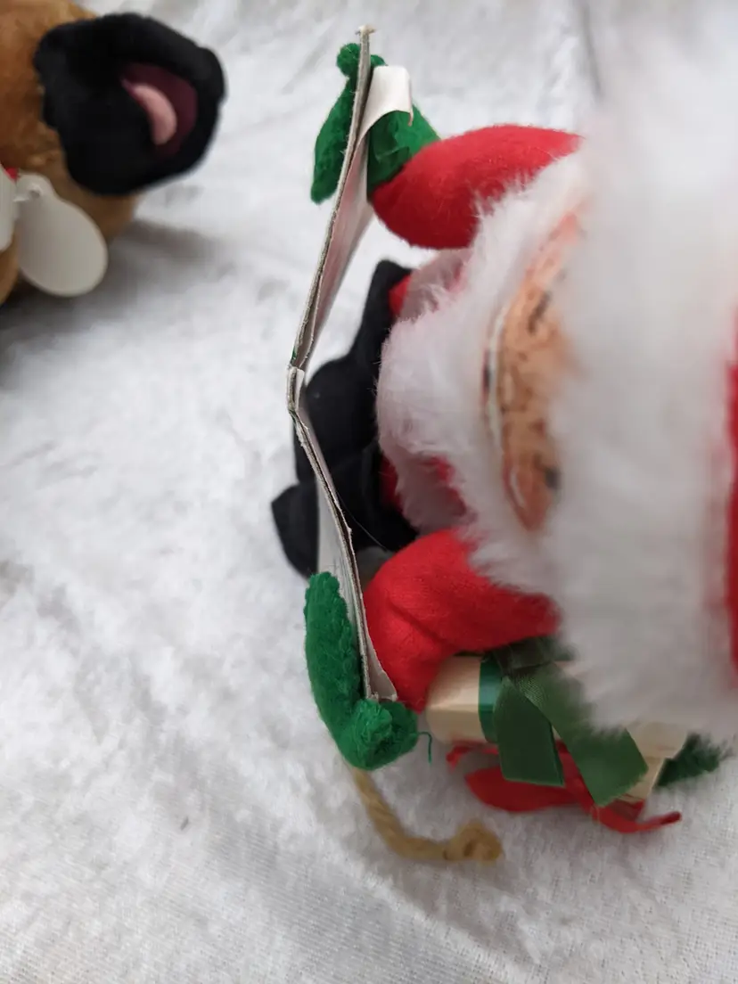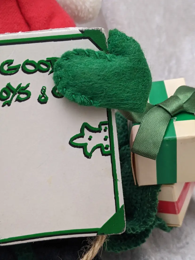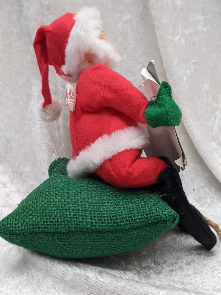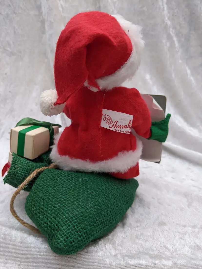 VTG Annalee 8" Santa Mobilitee Doll sitting on his bag Bag with Presents reading a book of Good Boys Girls Christmas decor . He is 7in wide and 8 in tall. Very good condition Clean with no damage. no weird smells. Please check the photos for details. Comes from a smoke free home. We do have pets.