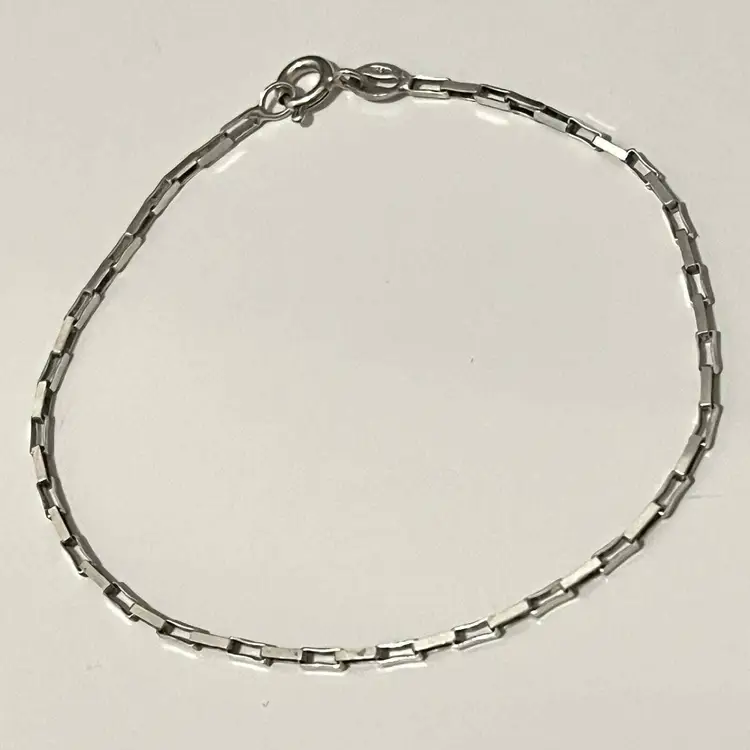 Brand: Arezzo Color: Silver Occasion: Anniversary, Birthday, Christmas, Engagement, Graduation, Mother's Day, Valentine's Day, Wedding Style: Chain Chain Type: Square Link Box Vintage: Yes Metal: Silver Metal Purity: 925 Type: Bracelet Features: Stackable Closure: Spring Ring Item Length: 7 in Shape: Round