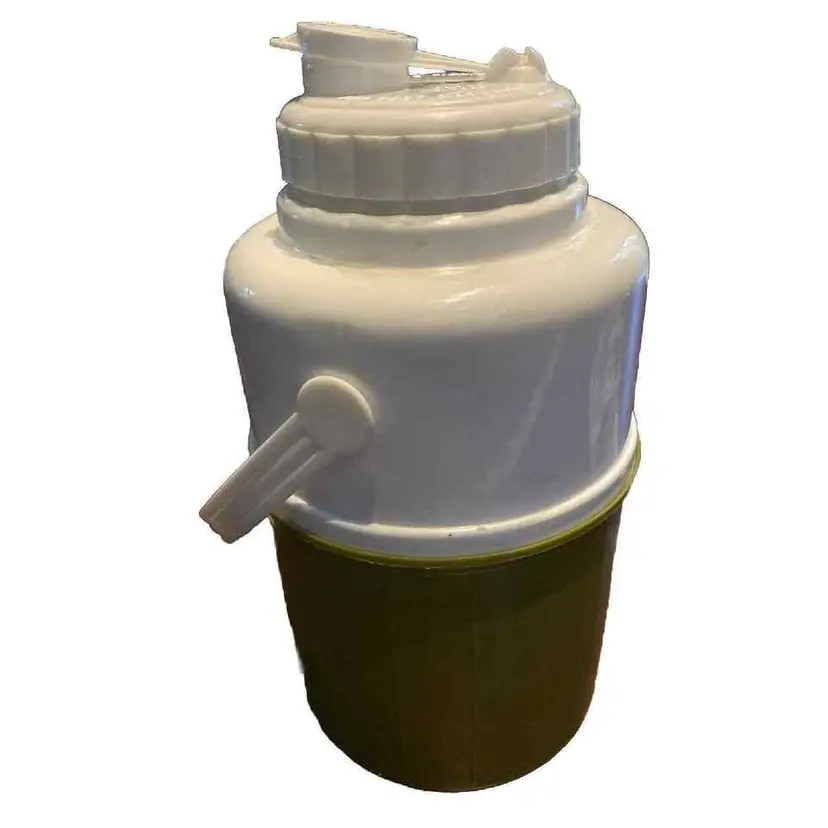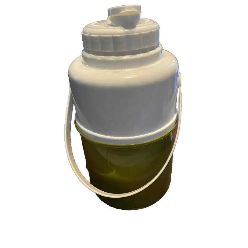 This vintage Bee Plastics Family Picnic Jug Half Gallon Thermos with Handle shines in a beautiful moss green color. It's perfect for keeping your drinks cold or hot during your outdoor adventures.