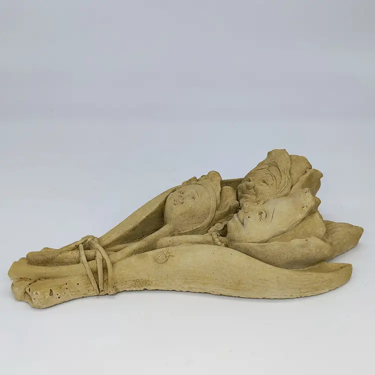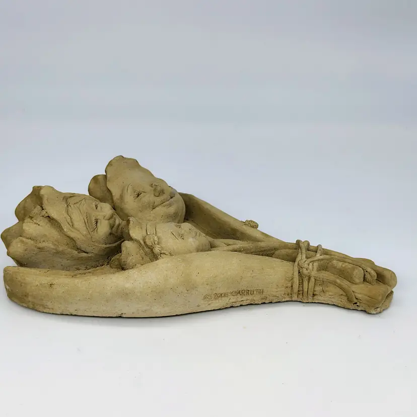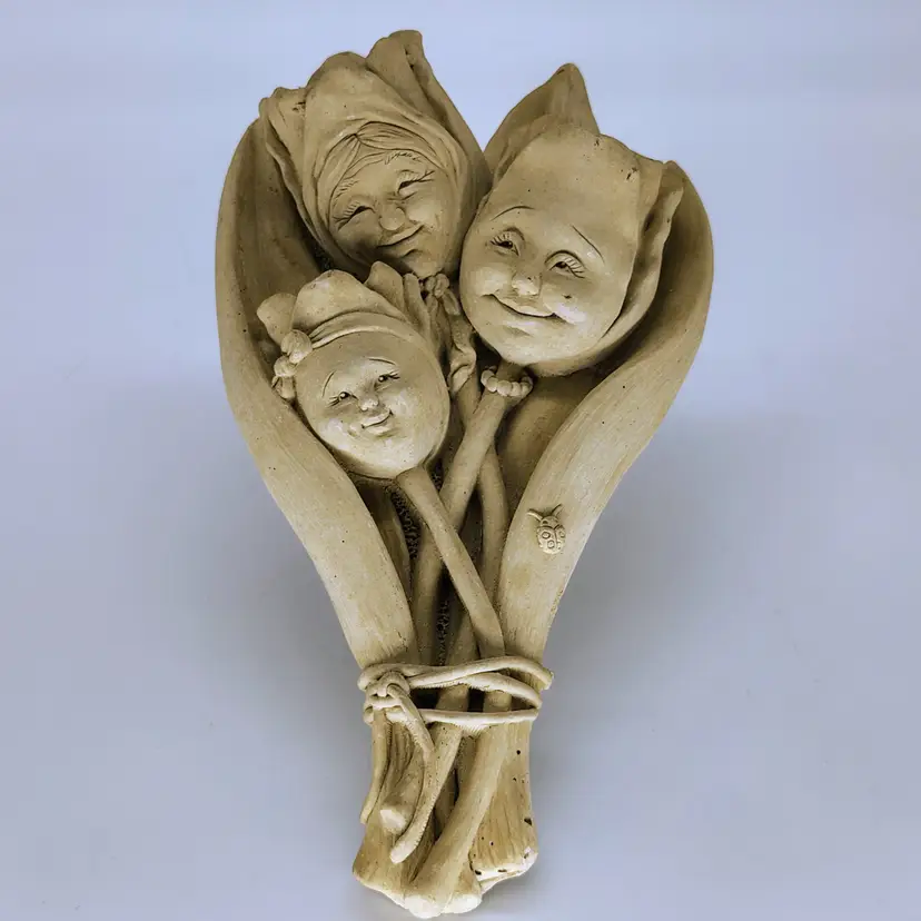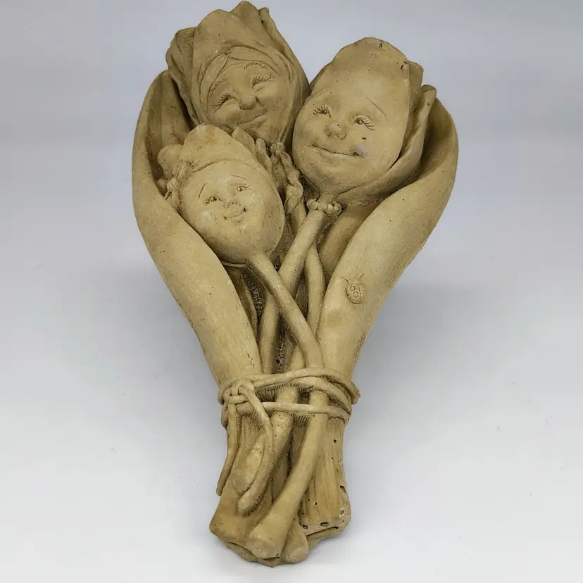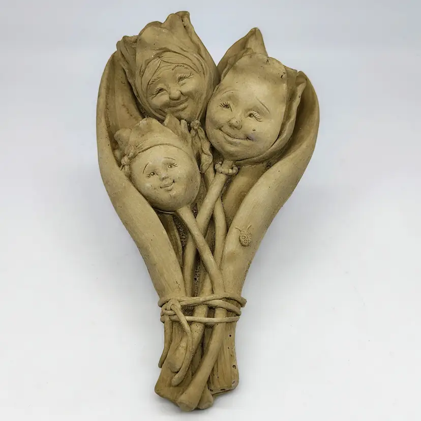 This is a handmade hand carved Carruth Pottery Wall hanging featuring sweet intricately carved faces