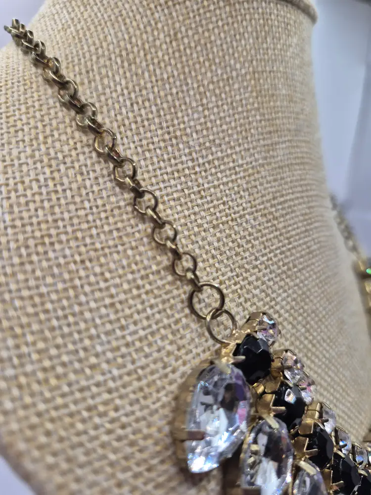 Vtg. Gold Tone Clear/Black Faceted Rhinestones Clear Teardrop Faceted Rhinestones 16" 3" Extension Chain Lobster Claw