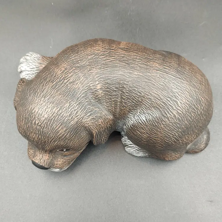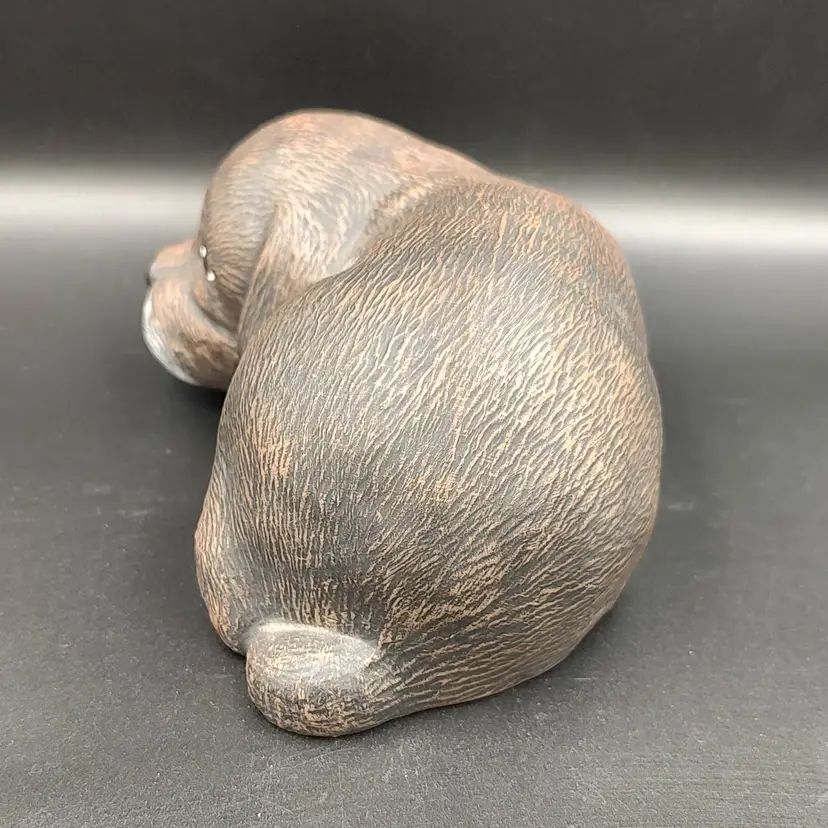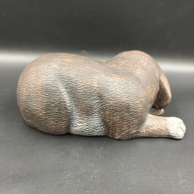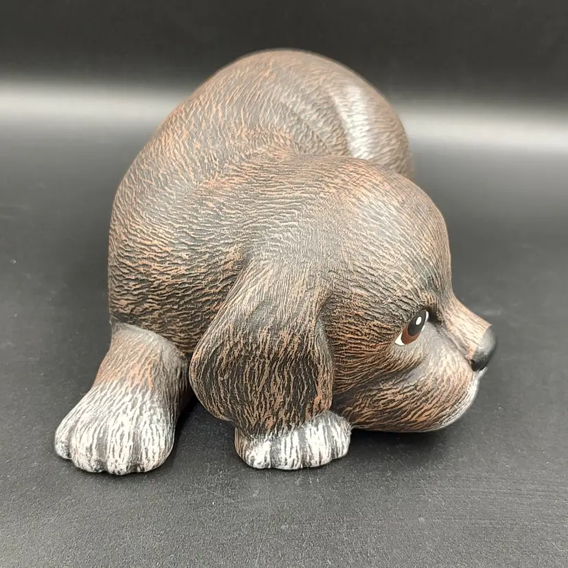 Vintage 1980's Hand Painted Ceramic Labrador Retriever Puppy Figurine. Signed M or W. Height 3" x width 4.5" x length 8".