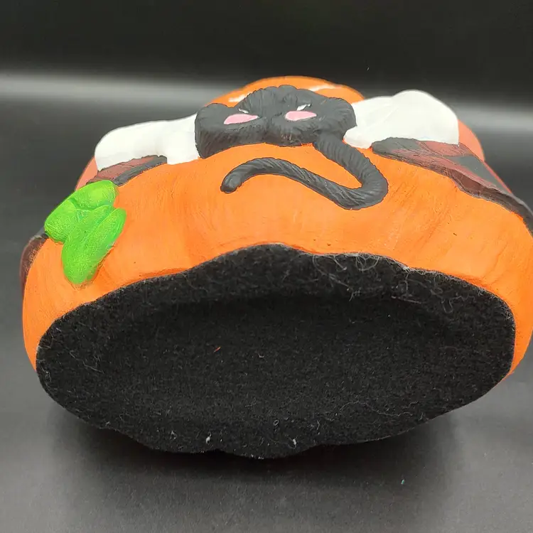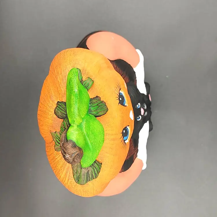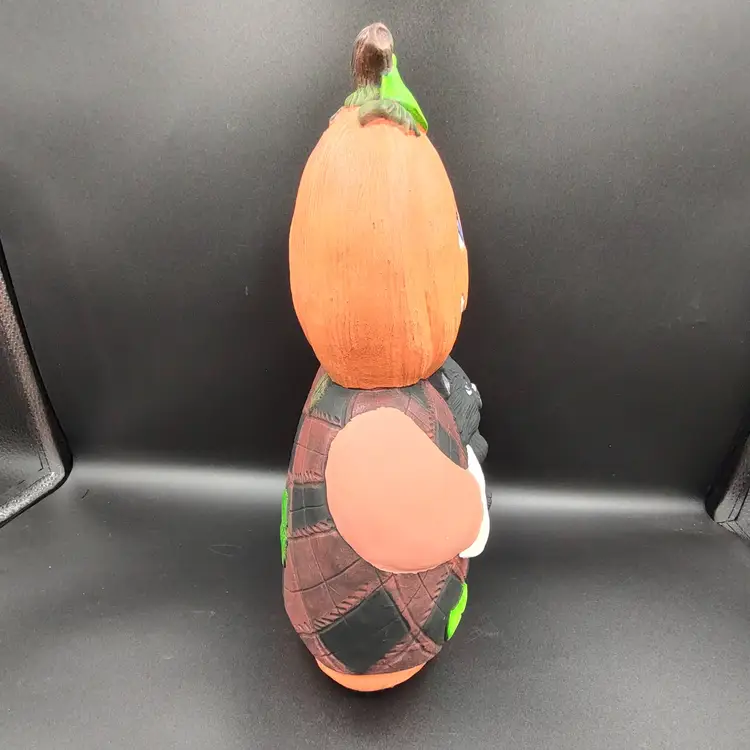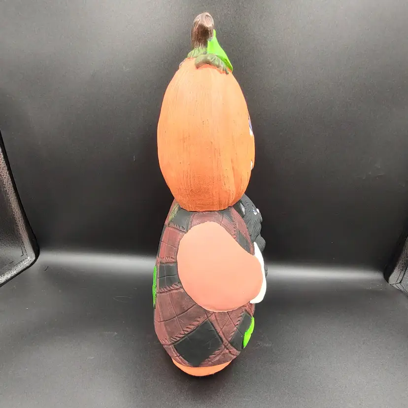 Vintage 1981 Hand Painted Ceramic Pumpkin Man With Black Cat Statue Figurine indoor use only. Has some scuffs as shown in pictures height 11.5" x width 4" x length 8".