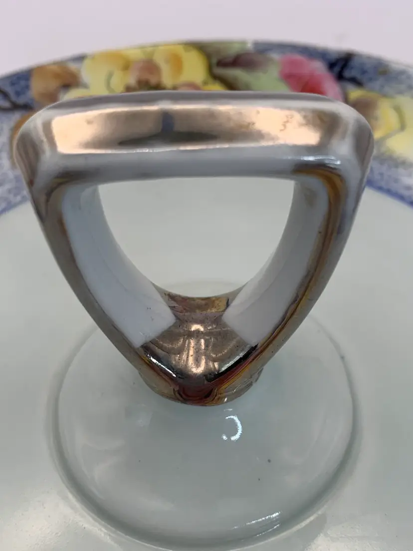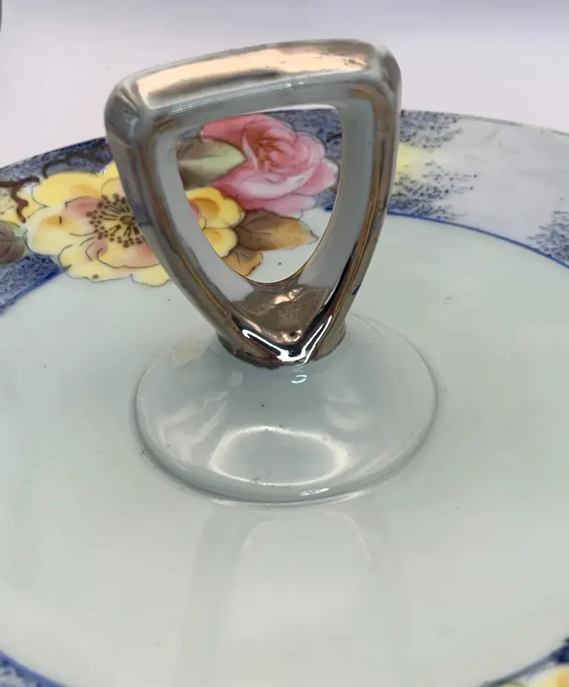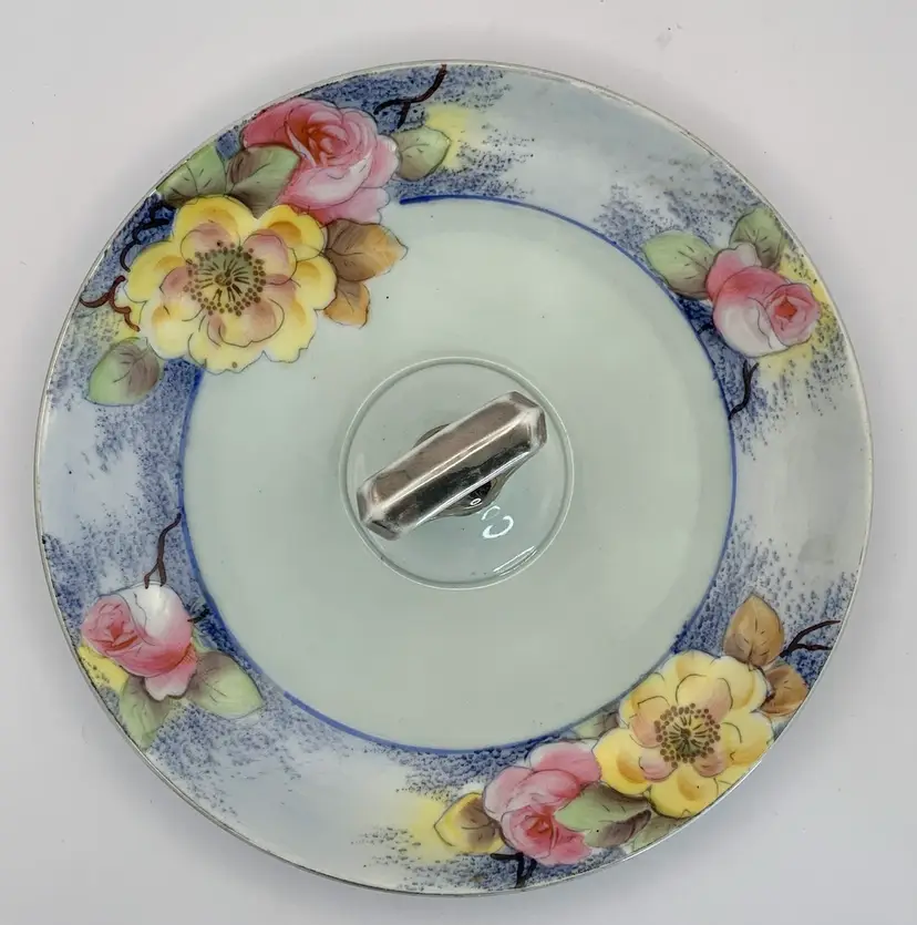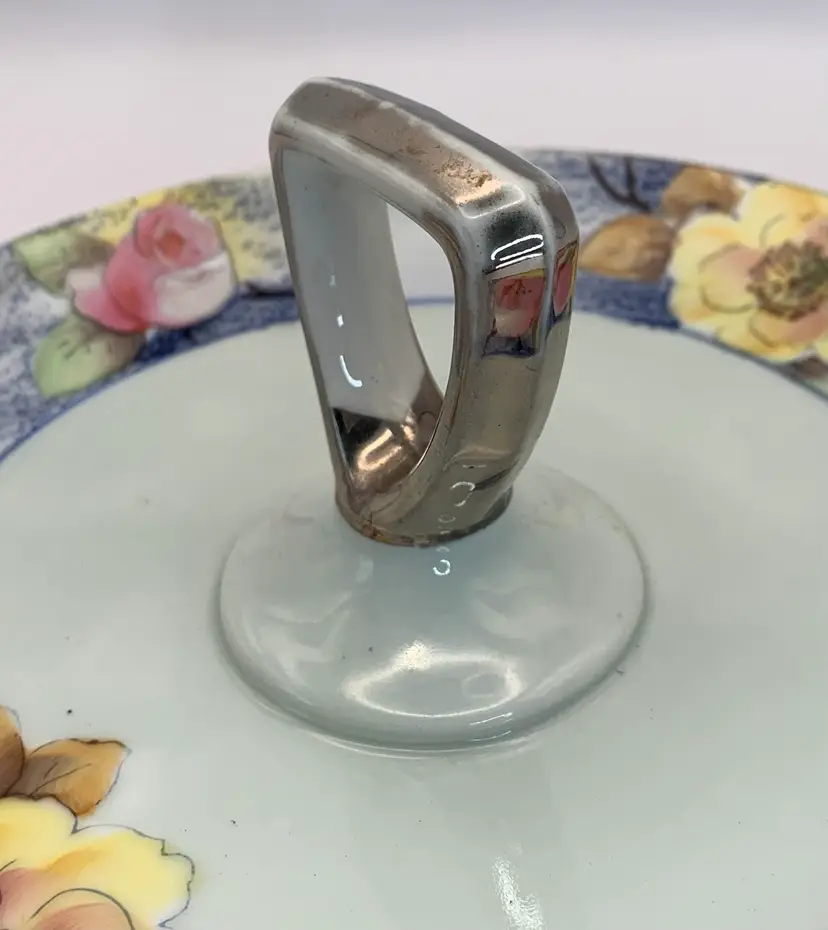 Beautiful dish with no chips, cracks or repairs. Some of the silver is worn off the edges of the handle, not too bad considering it is almost 100 years old. Please see all photos for details and measurements. I am happy to answer any questions. Thank you for checking out my listings.