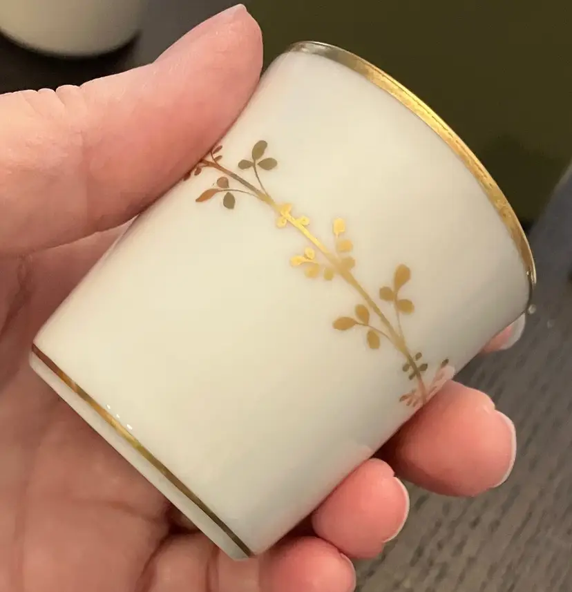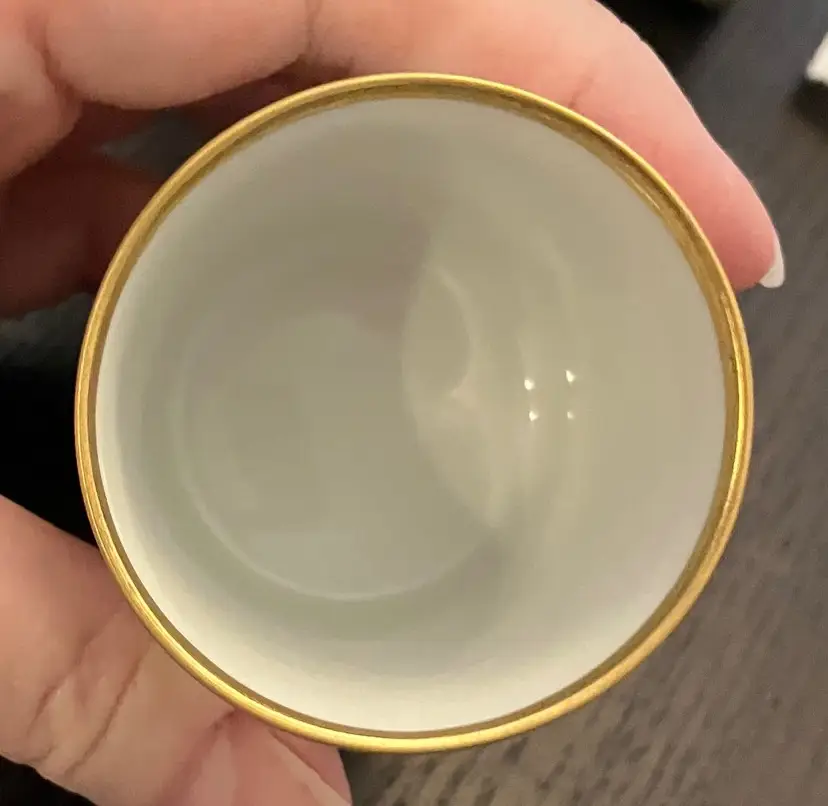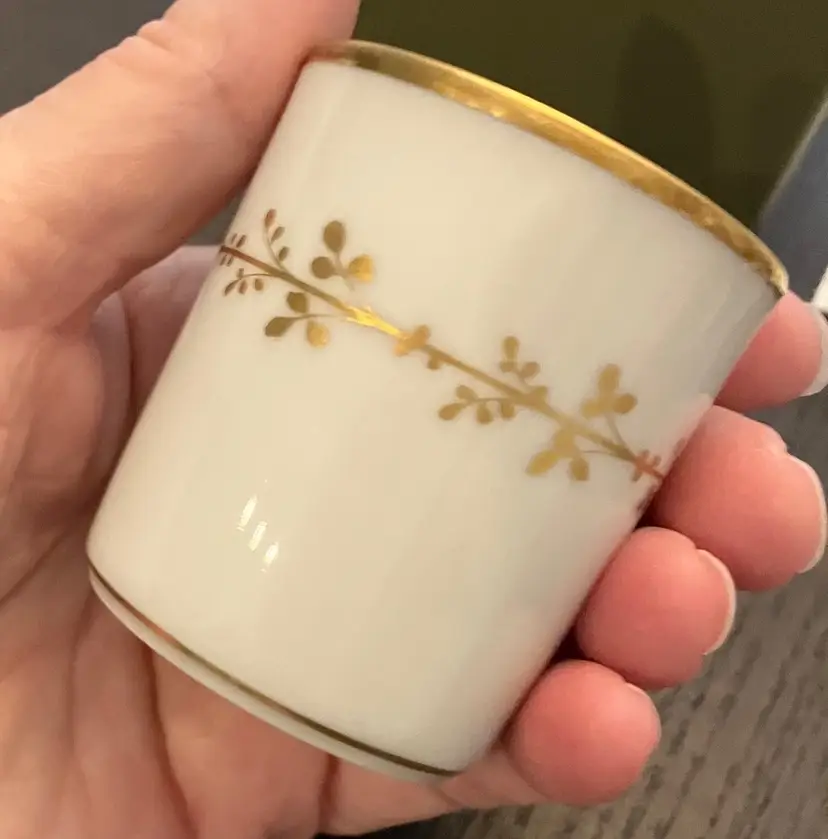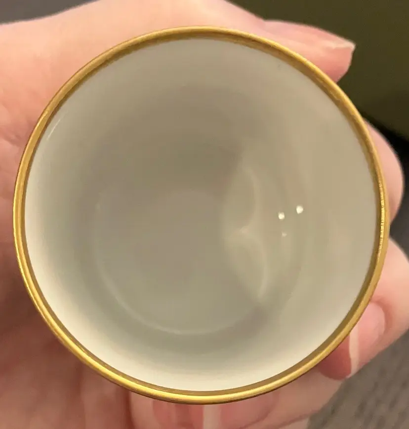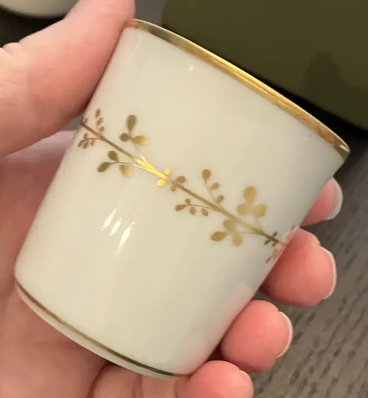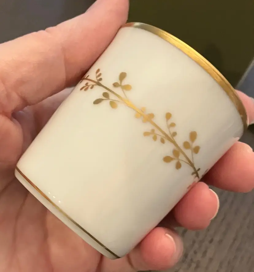 No condition issues. No wear seen. Gold is intact. Measurements: About 2" tall and 2" wide.