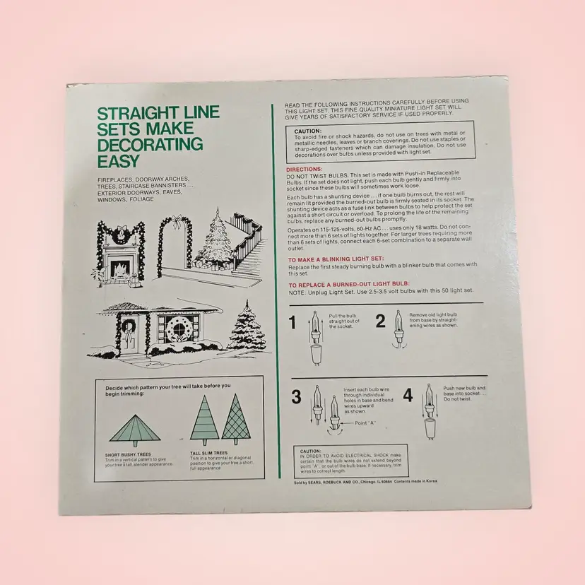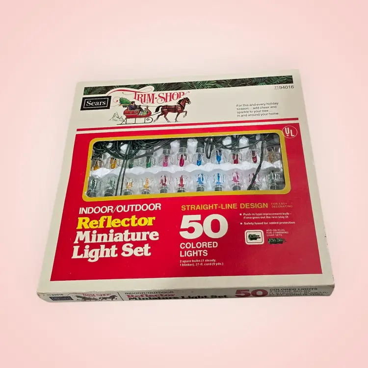 Vtg Sears Trim Shop Indoor/Outdoor 50 Reflector Miniature Light Set 27 Ft