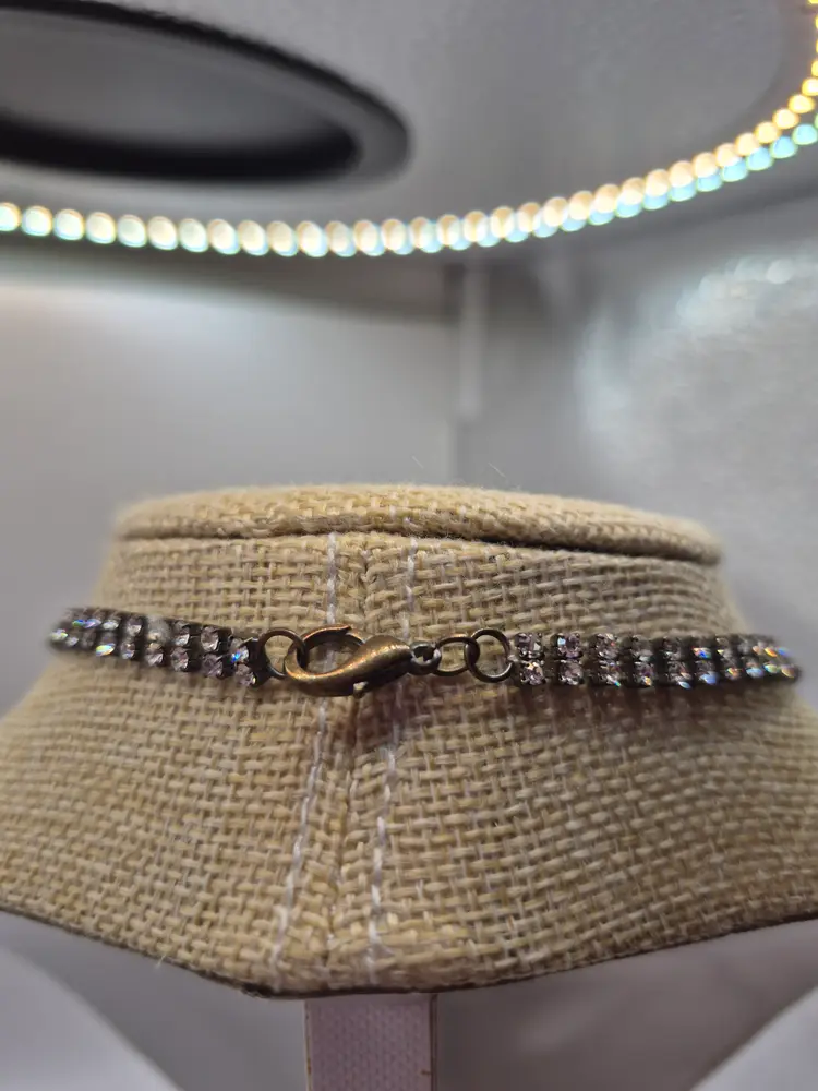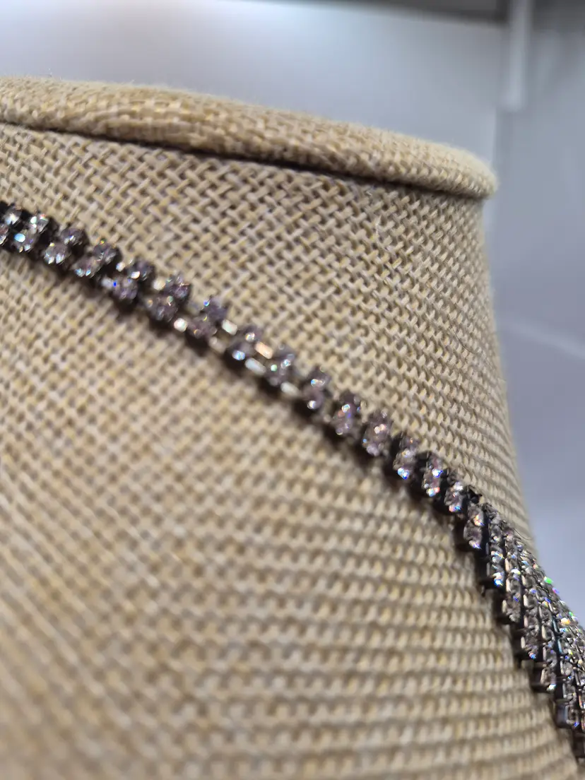 Vtg. Silvertone Tiny Rhinestones Fringe Bib Necklace 13"