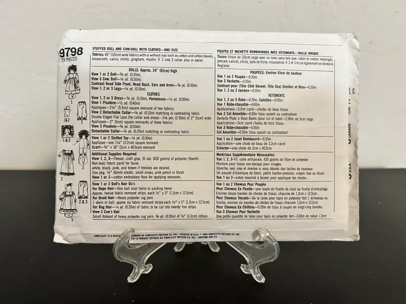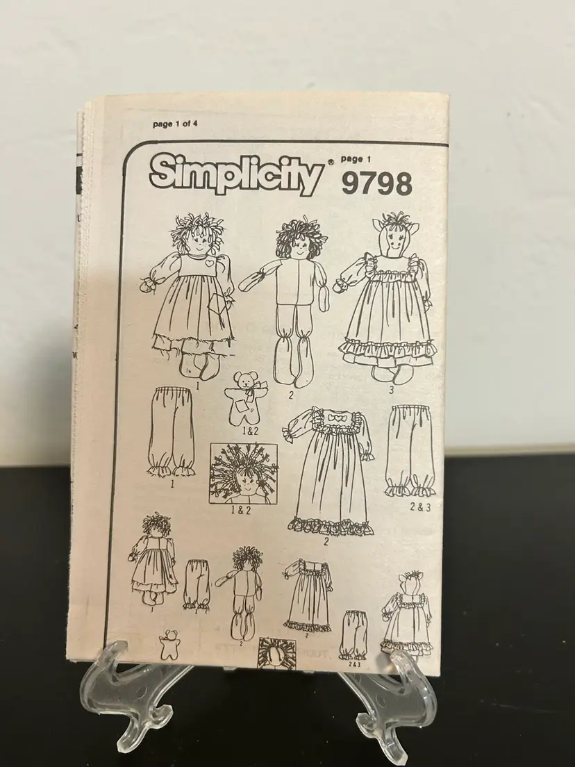 Vtg Simplicity Crafts Pattern 9798 Stuffed Dl w/ Clothes Uncut FF