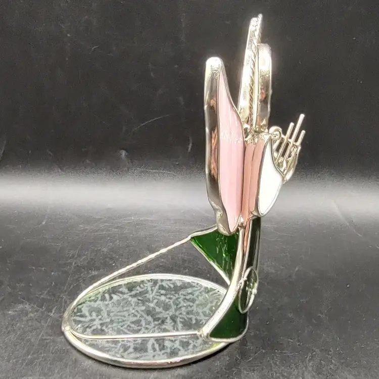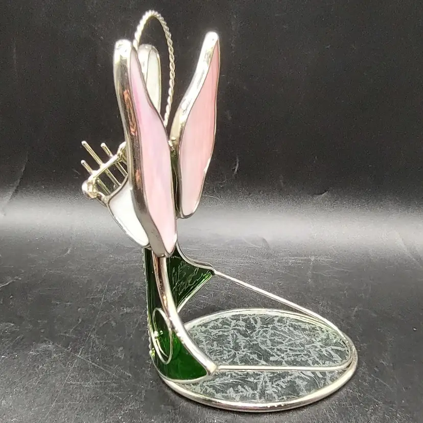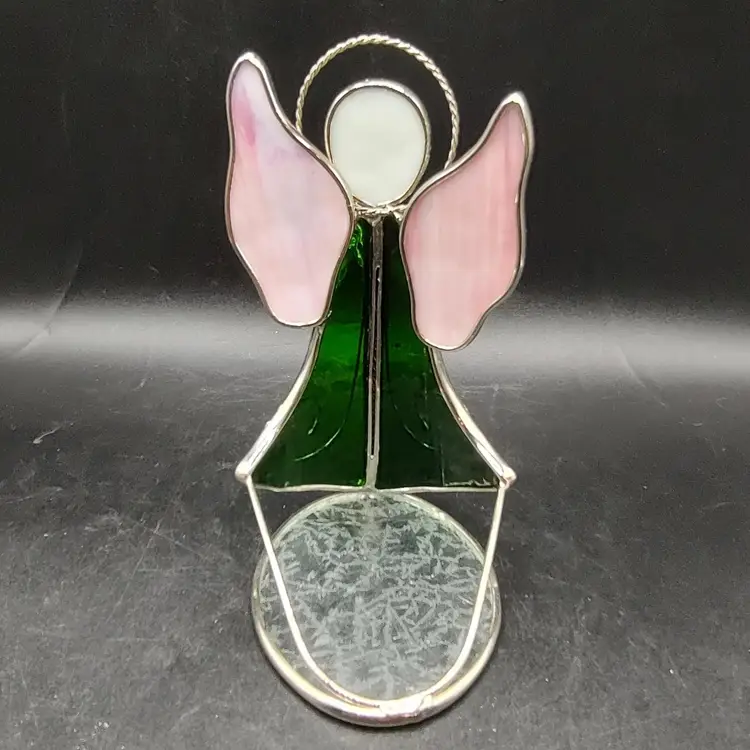 Vintage Stained Glass Singing Angel Tea Light Holder. In good condition height 5.5" x width 3" x length 3.5".