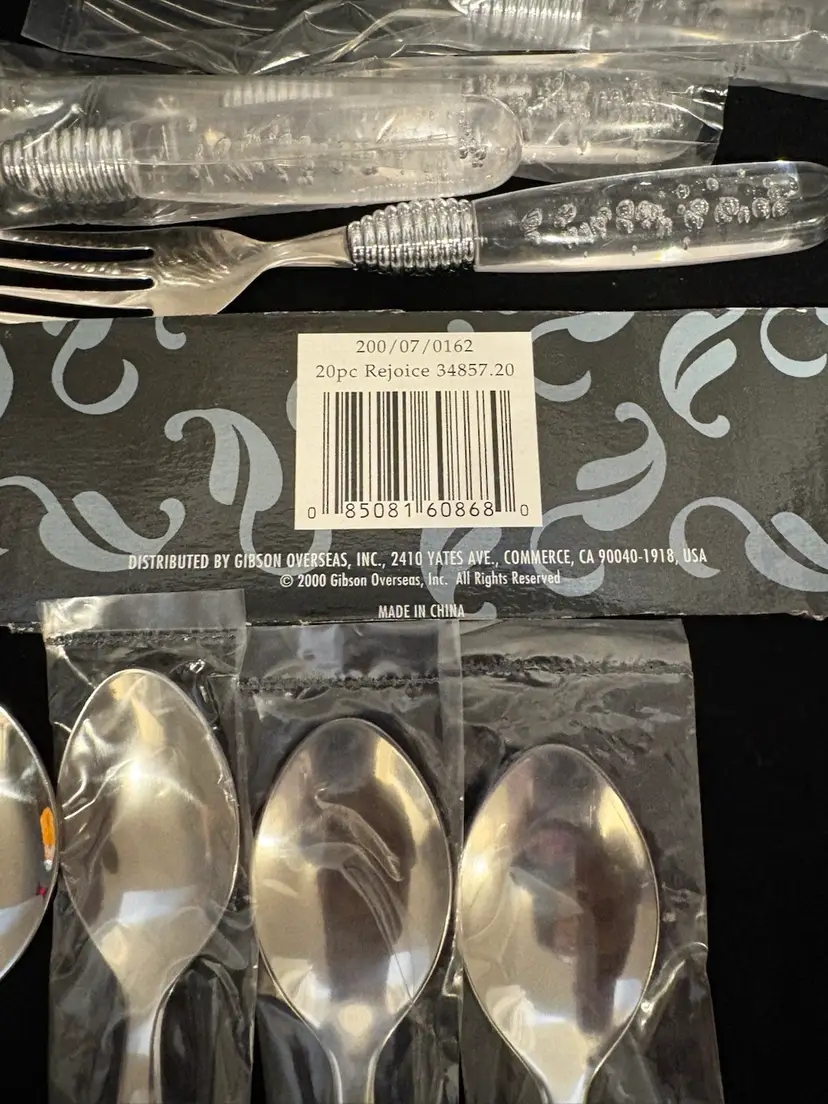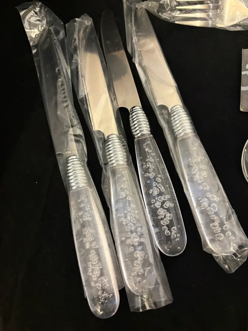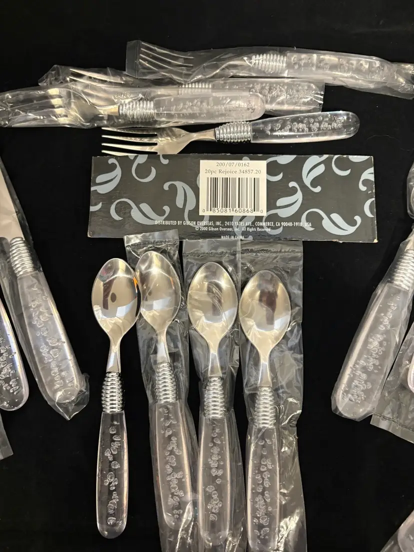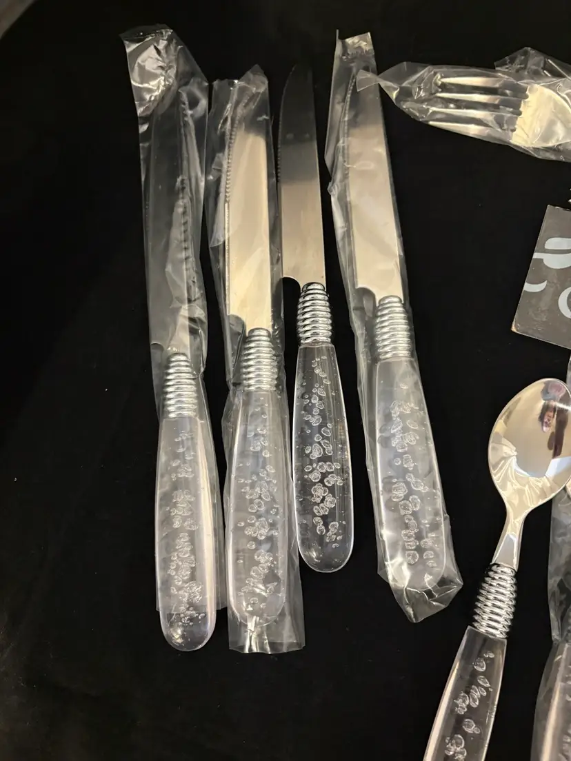 Vtg Stainless 20 piece flatware set Acrylic handles controlled bubbles Gibson Brand