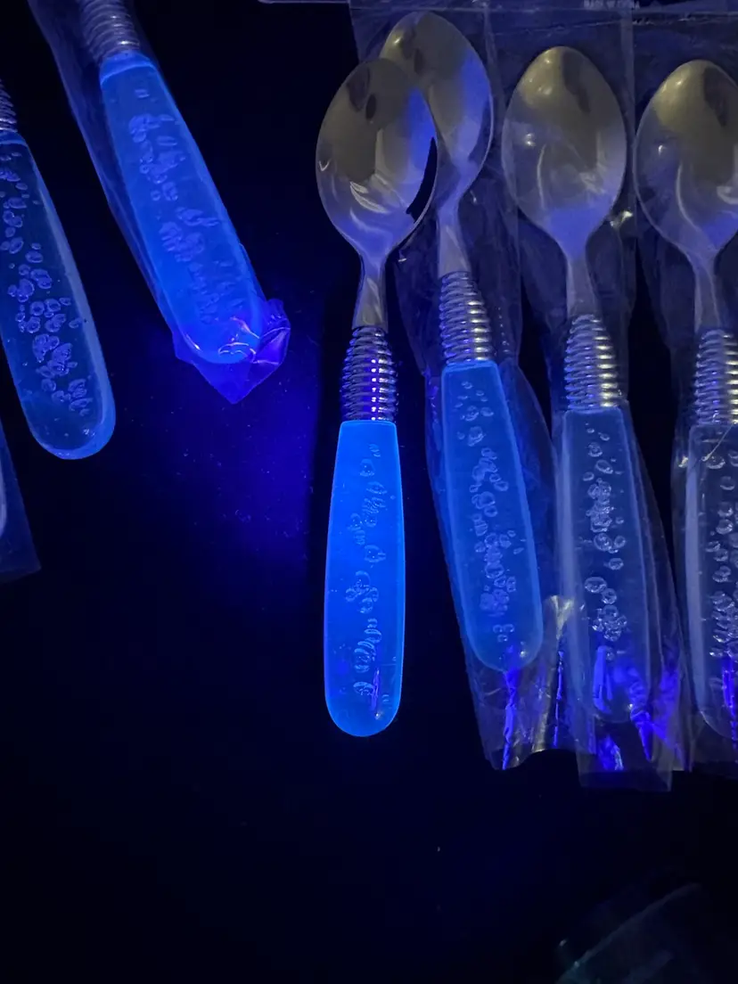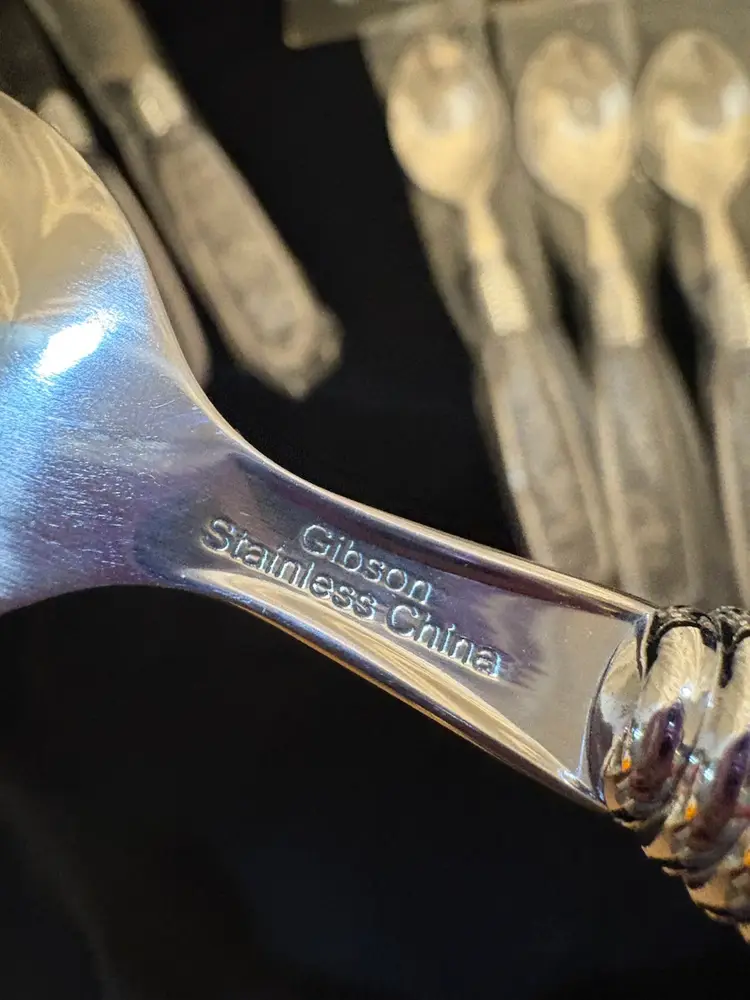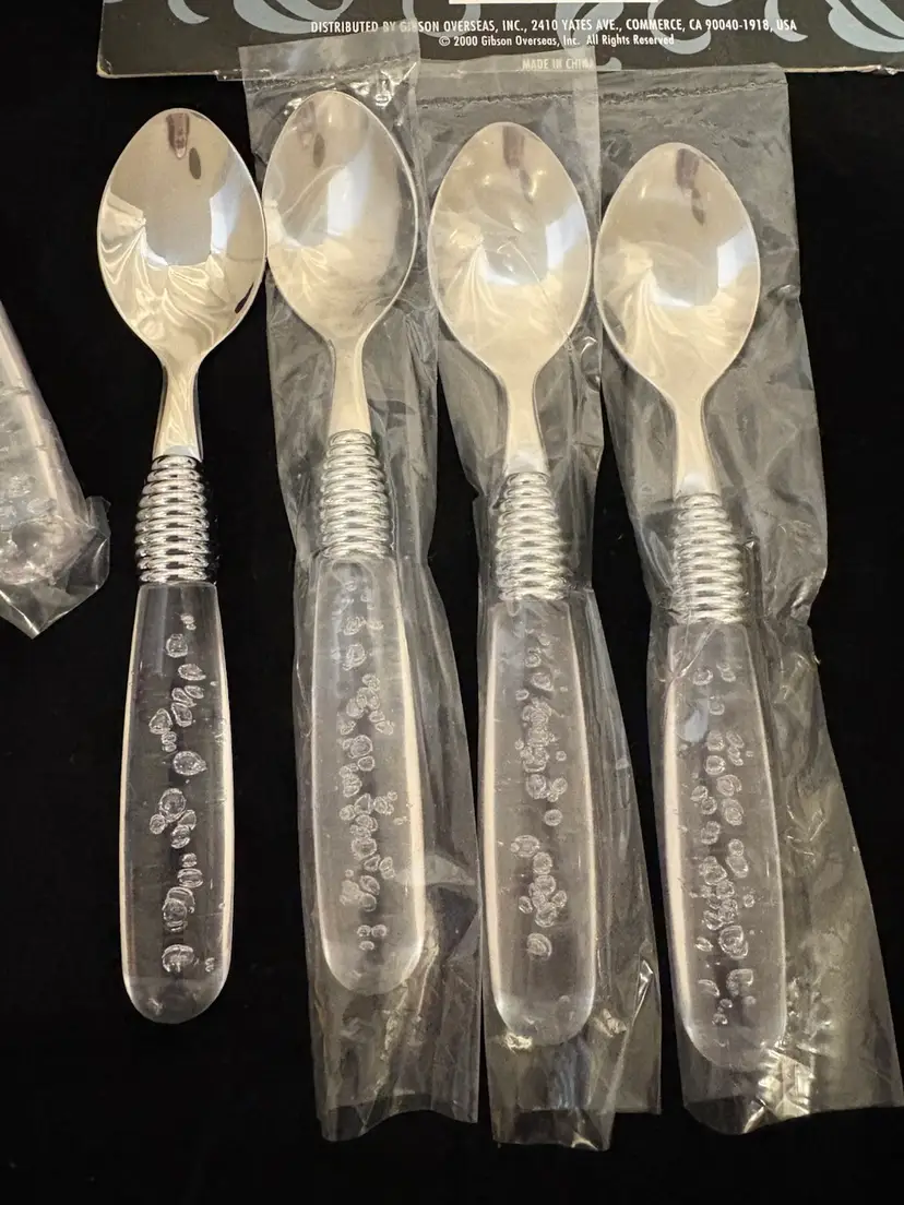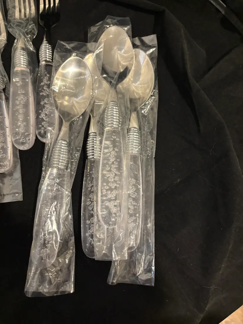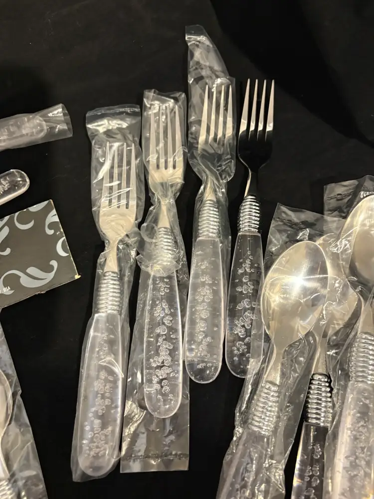 Vtg Stainless 20 piece flatware set Acrylic handles controlled bubbles Gibson Brand