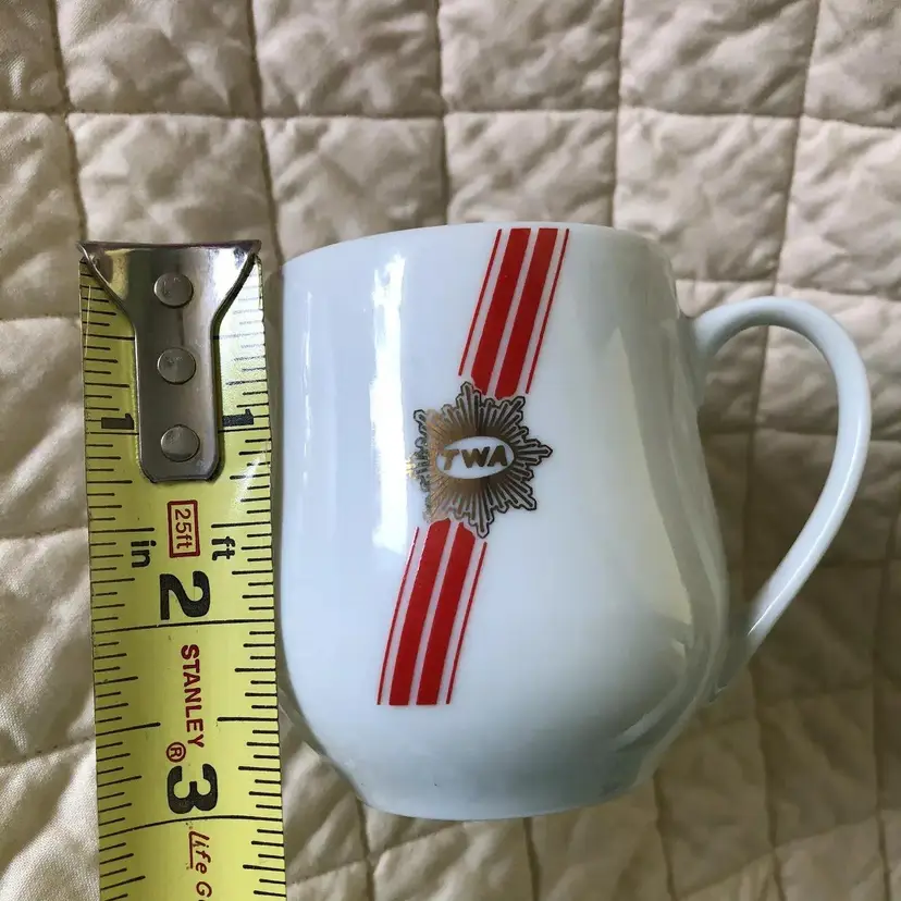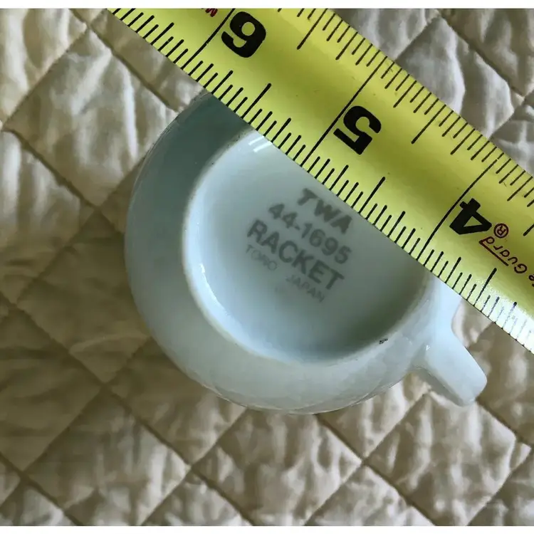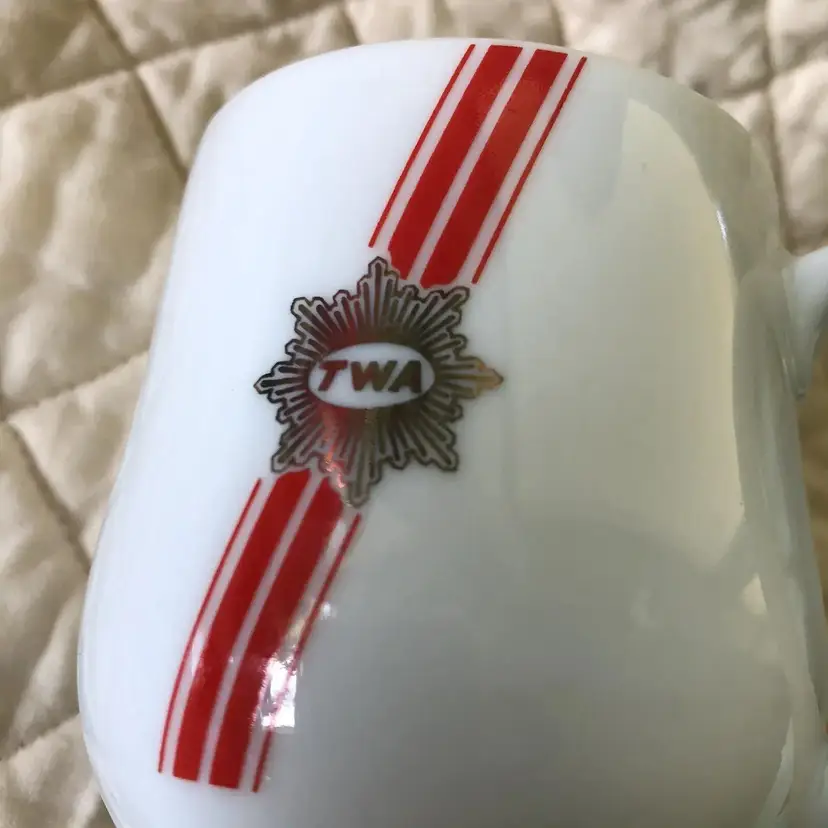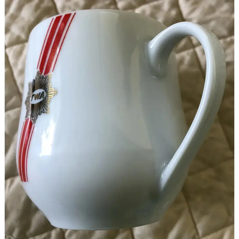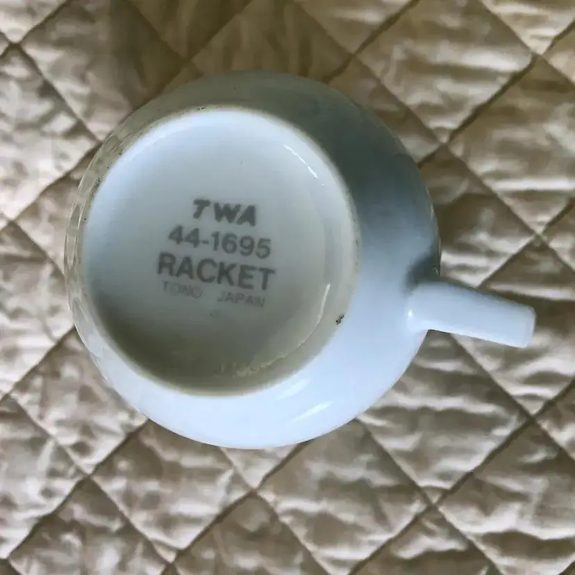 VTG TWA AIRLINES Advertizing Mug Small White & Red TWA logo Coffee Tea Mug DEMITASSE TONO Japan 44-1695 RACKET