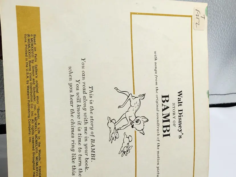 Walt Disney's Story of Bambi Book & Record in very good overall condition.