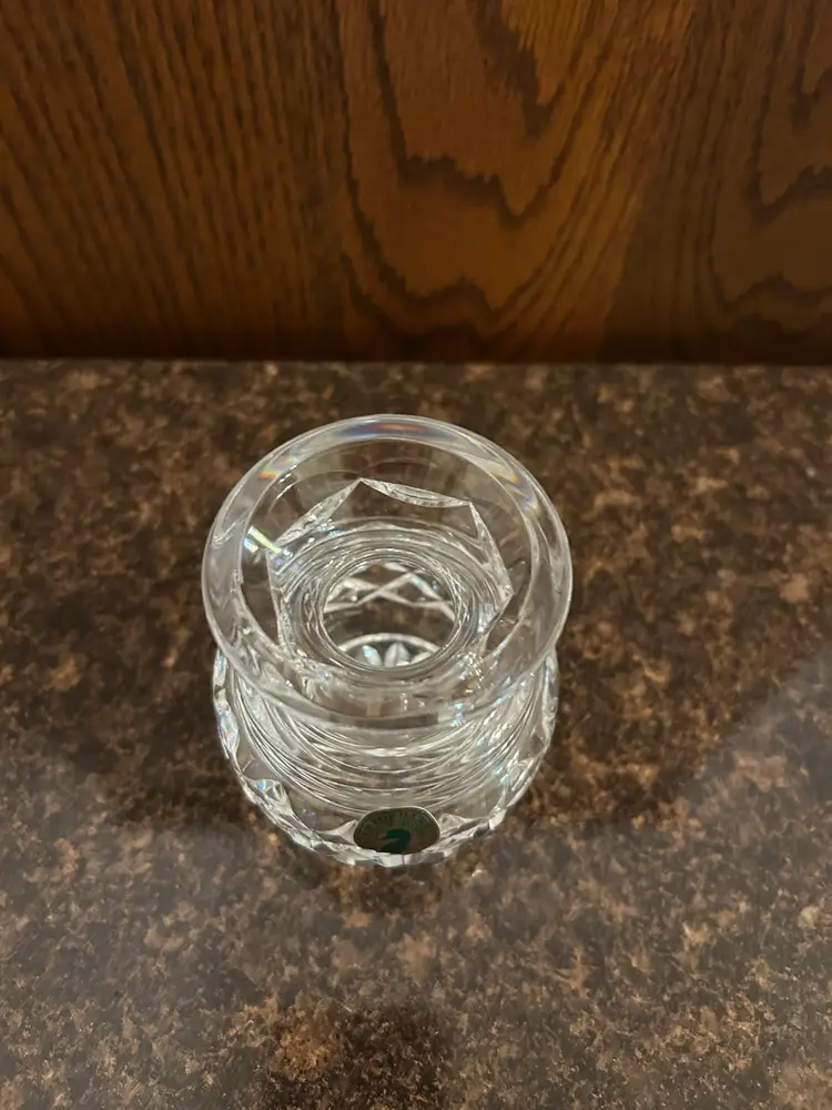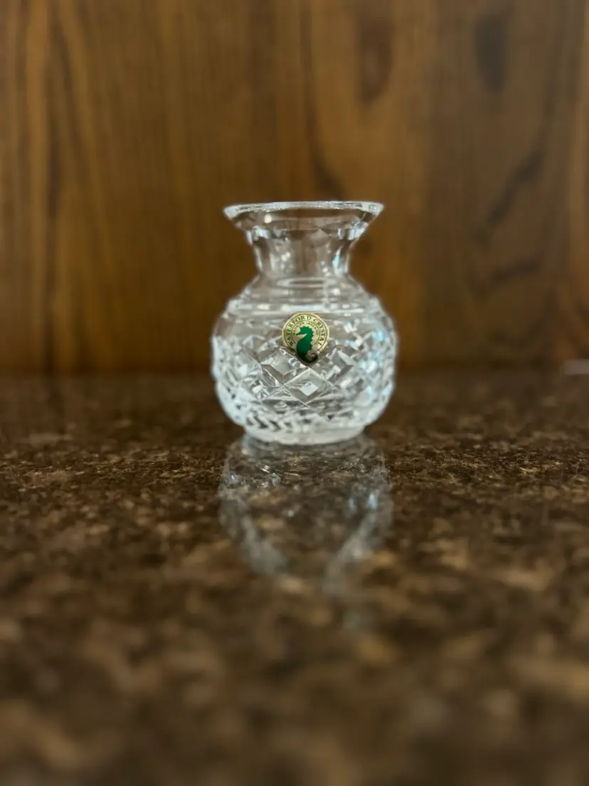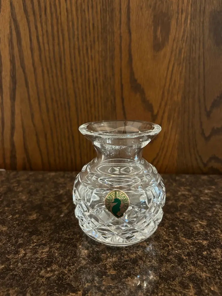 I believe this is from the Lismore collection. Beautiful Bud vase with Waterford sticker. In pristine condition.