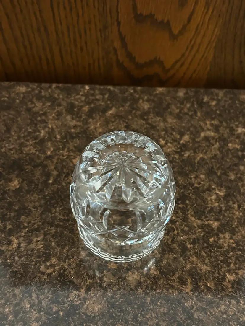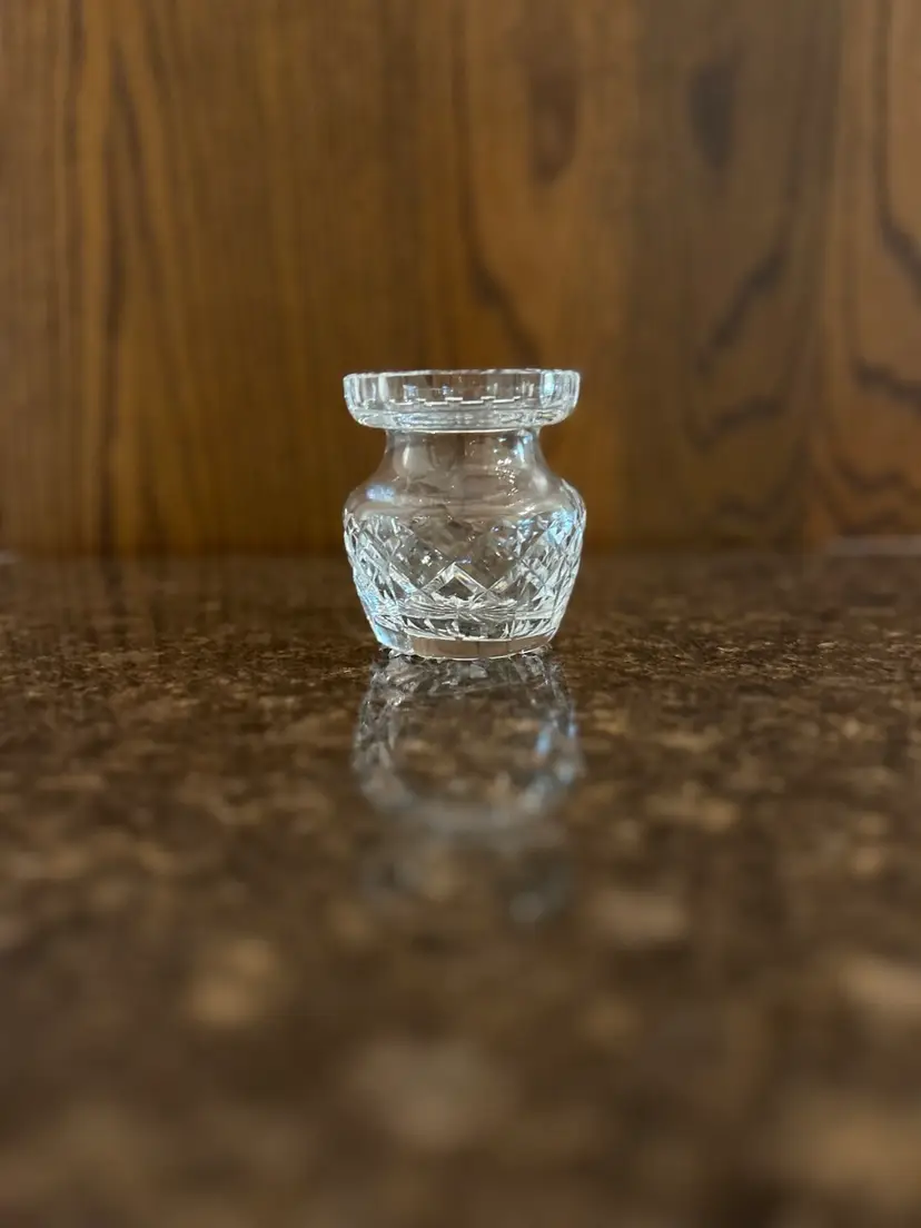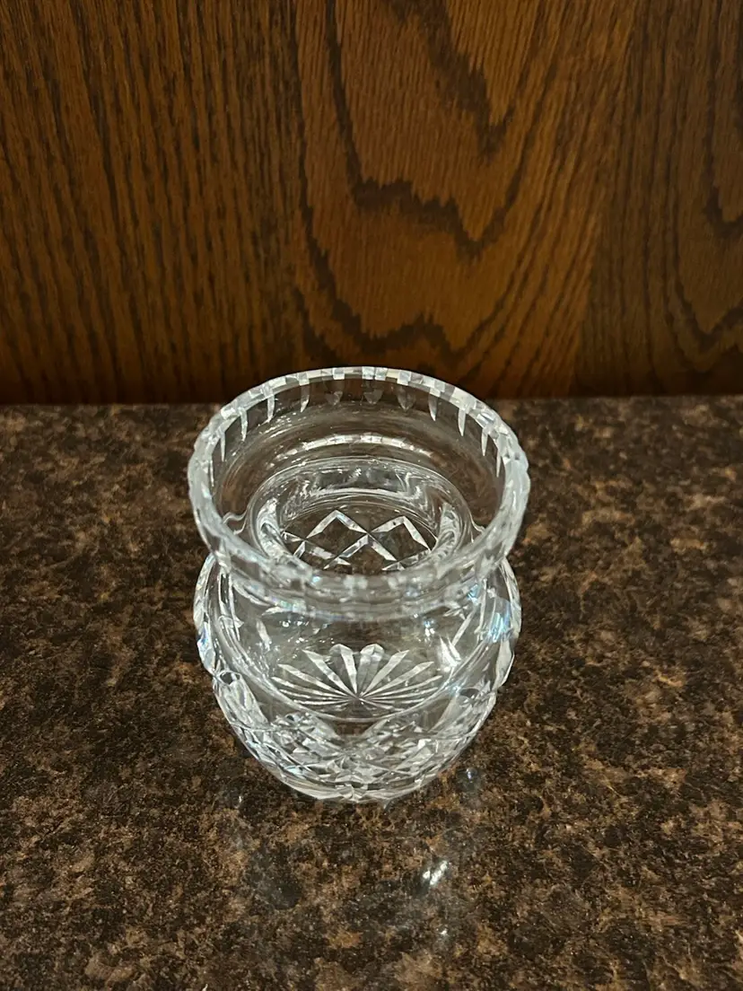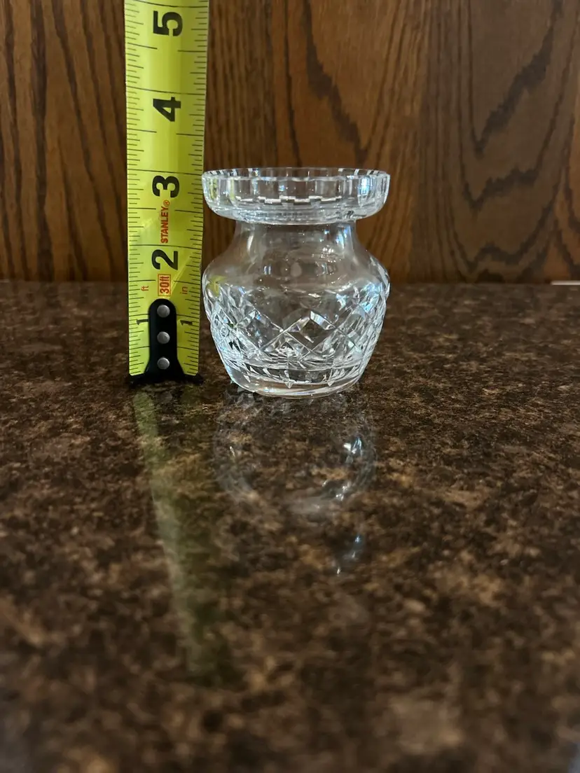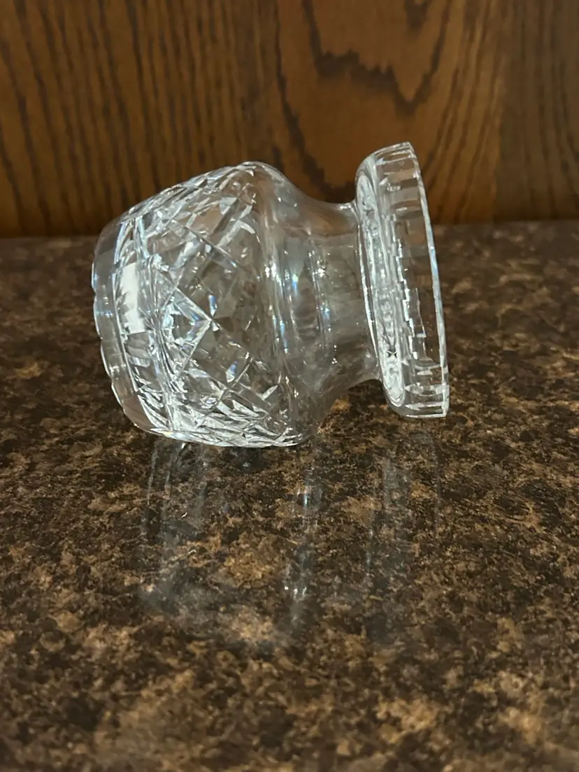 Beautiful crystal condiment jar. Measures 3 inches tall. Missing lid.