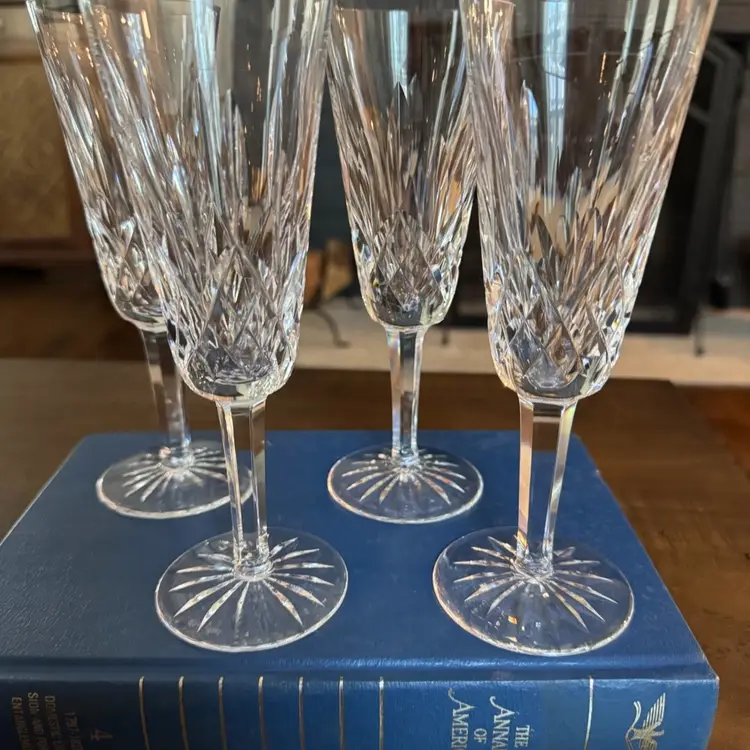 Vintage Lismore pattern Waterford champagne flutes. Set of 4