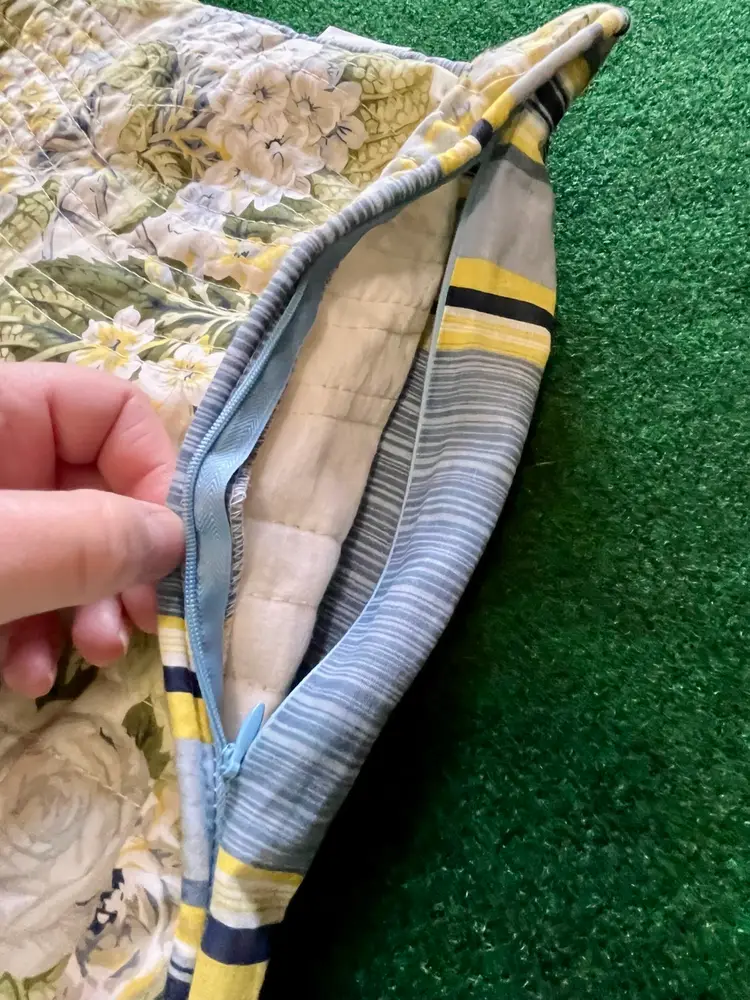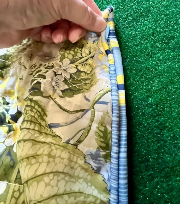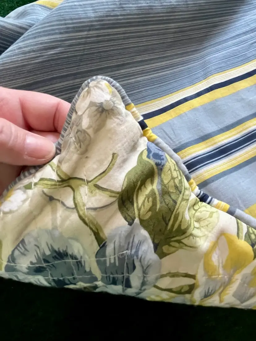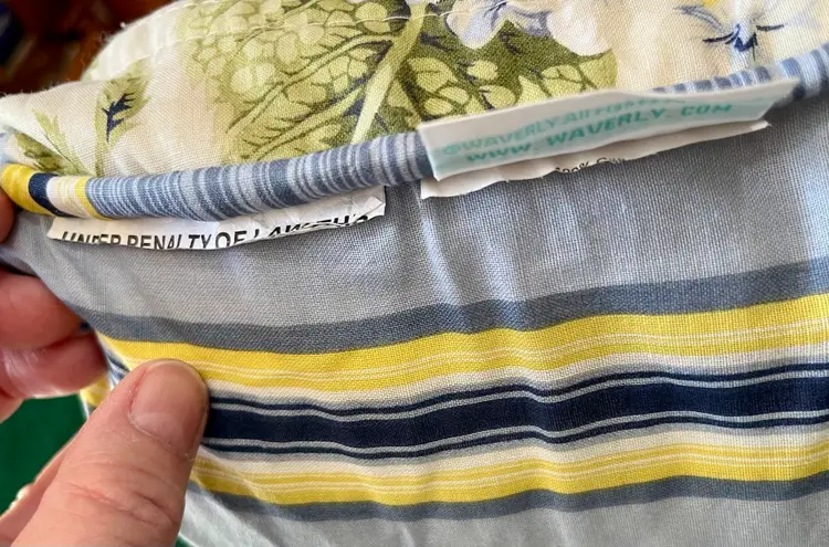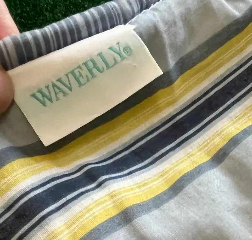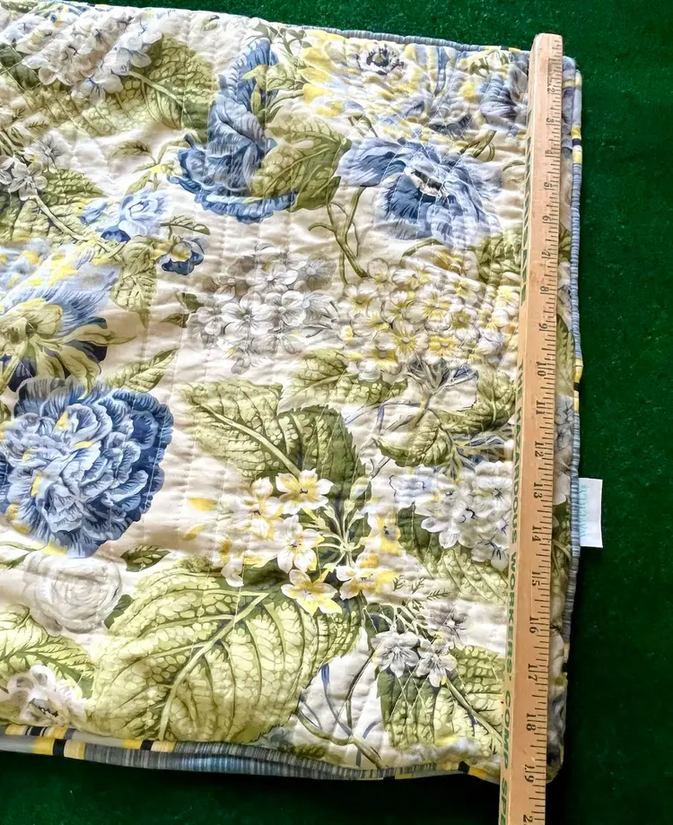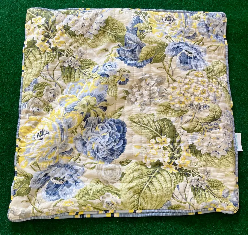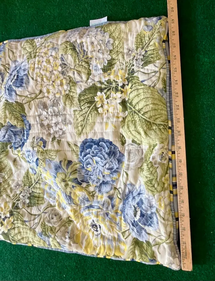 The Waverly Sofa Pillow Cover (NO pillow) features a beautiful blue and yellow hydrangea and a stripe design, perfect for adding a touch of French Country style to any room reminiscent of the Grand Hotel on Mackinac Island, Mi., Spiegel Catalog design room of the early 1980s (where I worked year-round). This square-shaped with piping edges cover measures approximately 19” x 19” and is made from comfortable cotton fabric. The double-sided design showcases a quilted floral pattern on one side and a stripe on the other, making it a versatile and charming addition to your home decor. Easy to care for with spot cleaning, this indoor pillow cover from Waverly is ideal for bringing a touch of nature and designer flair to your living space.
