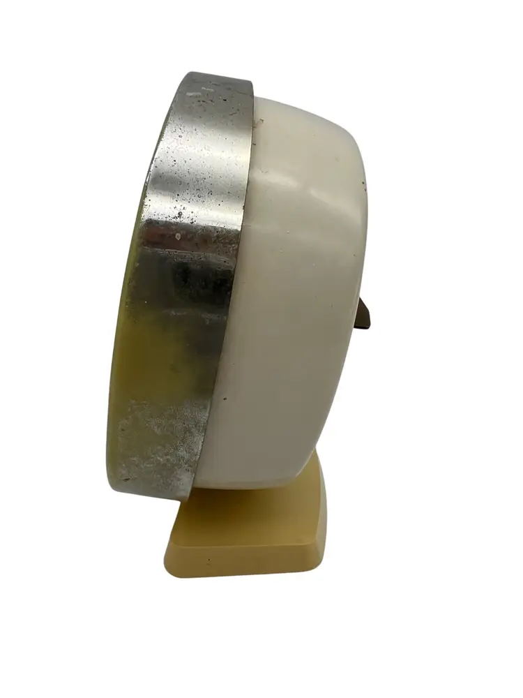 Some scuffs and scratches to bezel and base. Clock is functioning and keeping time. Alarm works but makes more of a clacking sound versus a bell sound. See pictures for further details on condition.